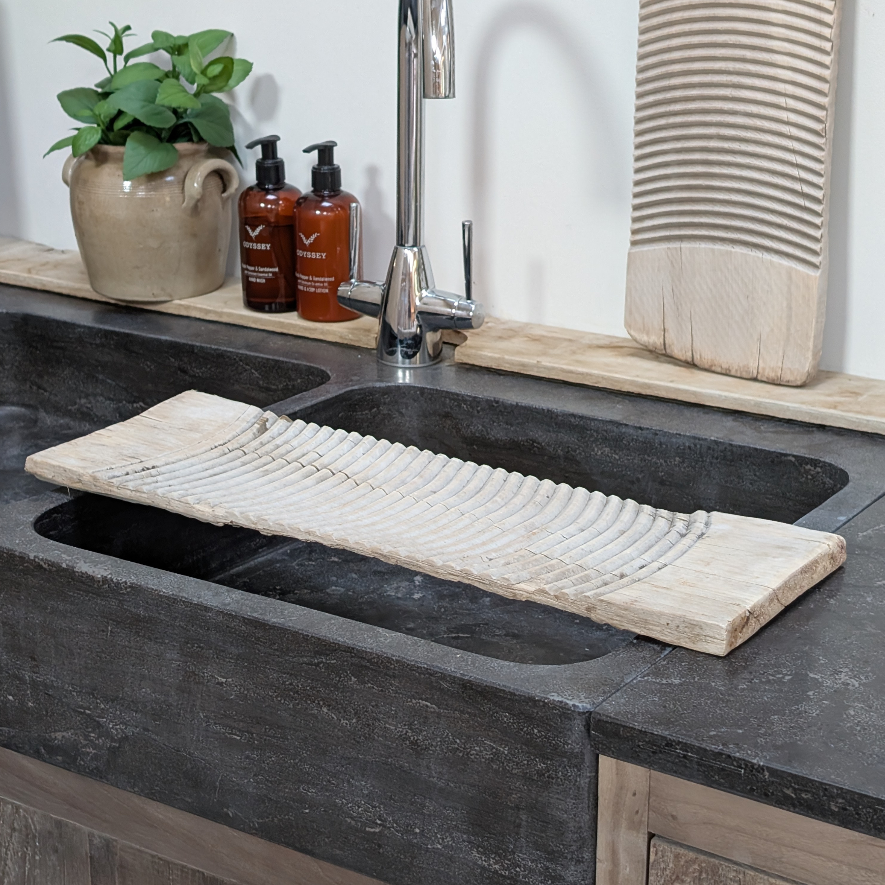 Our limited collection of reclaimed elm washboards would make a great addition to your kitchen, laundry room or bathroom. The perfect styling piece to add warmth and rustic charm to your home. Each washboard is unique with slight variations in size, tone and wear, all adding to their wonderful character.