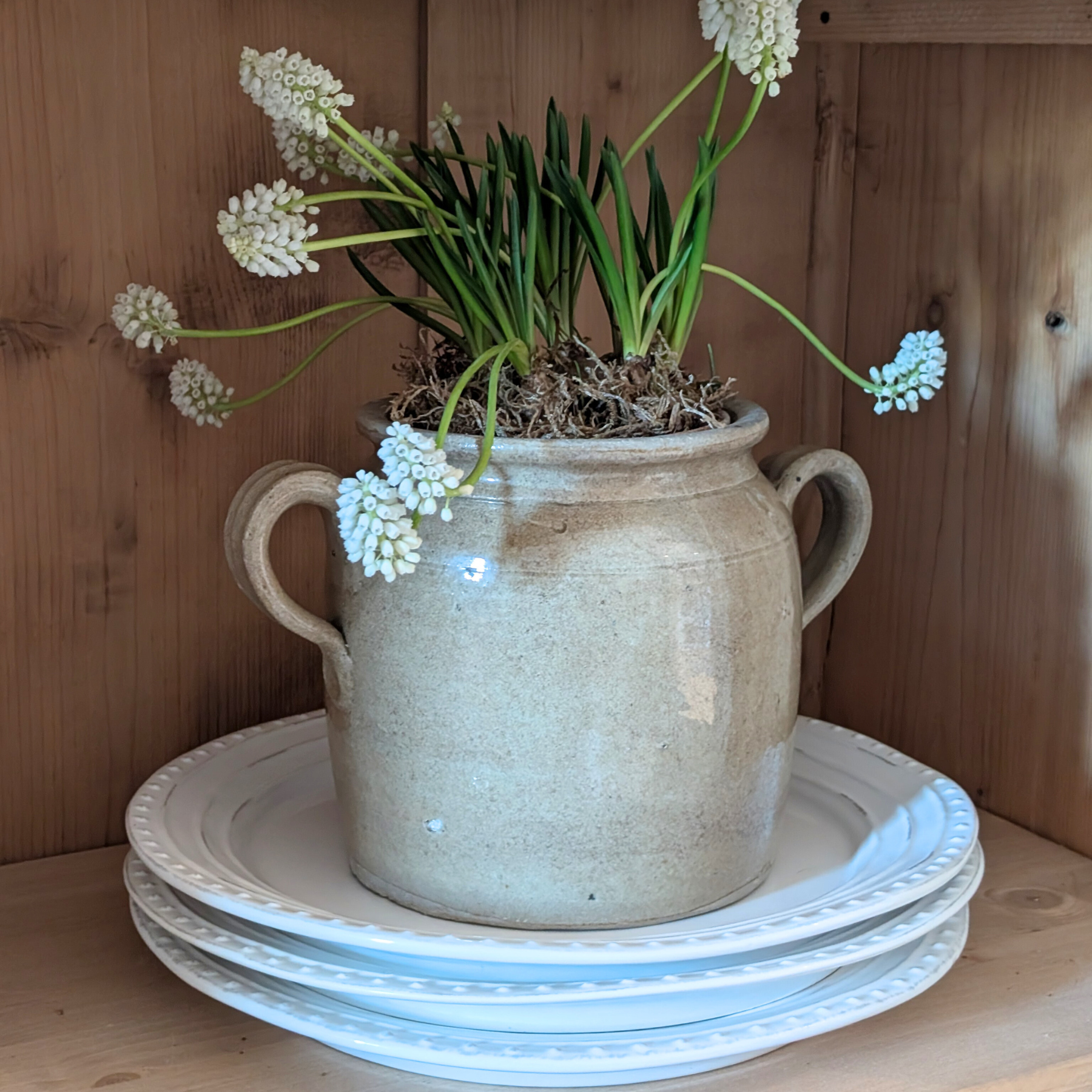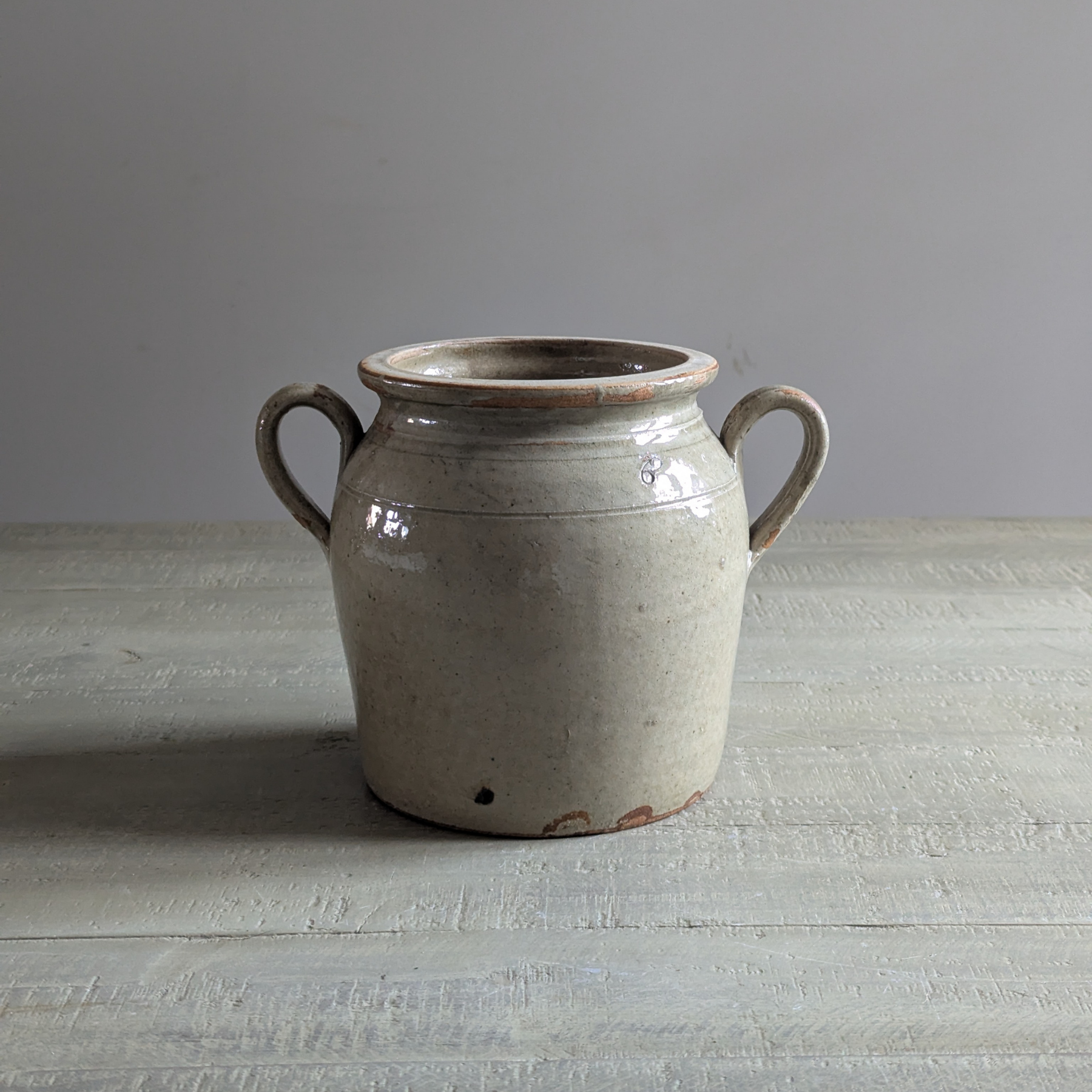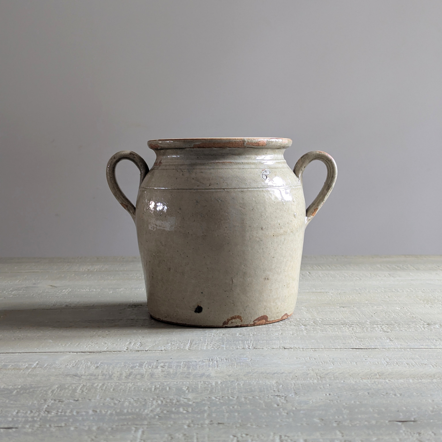A really sweet confit pot, this pale neutral vessel has rare loop-style 'ears' which make it even more special. Style alone or display your favourite seasonal bouquet to add some French country farmhouse charm to your home.