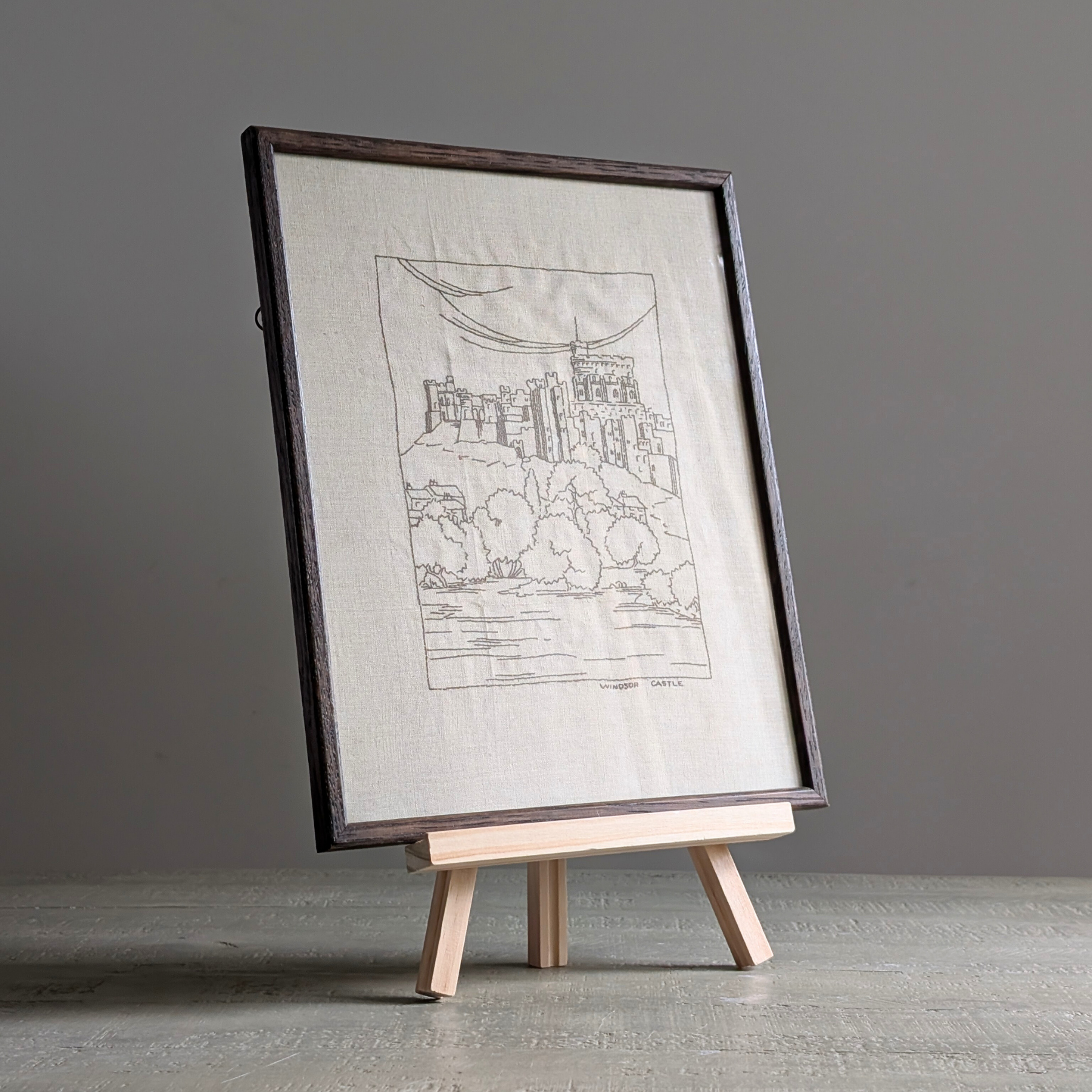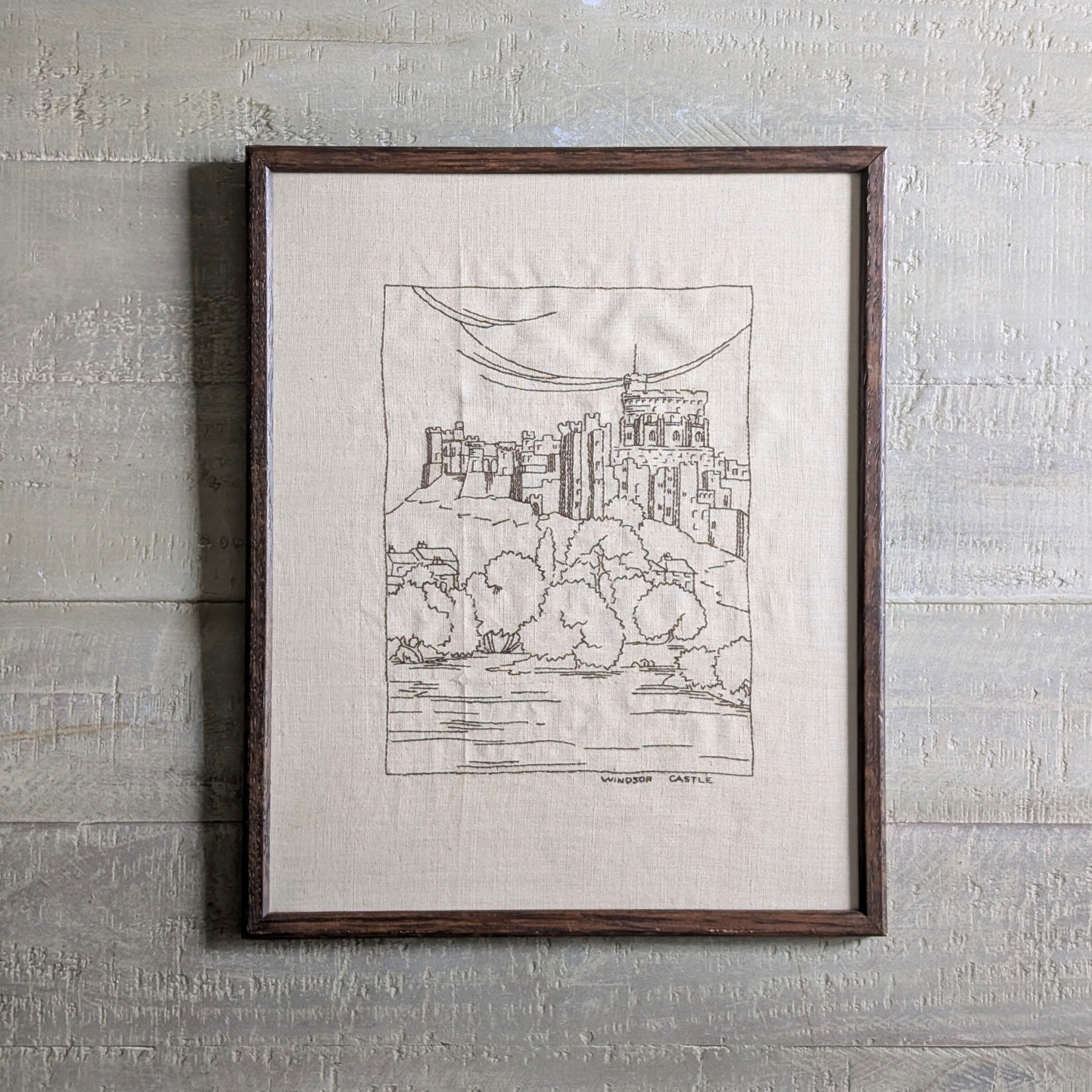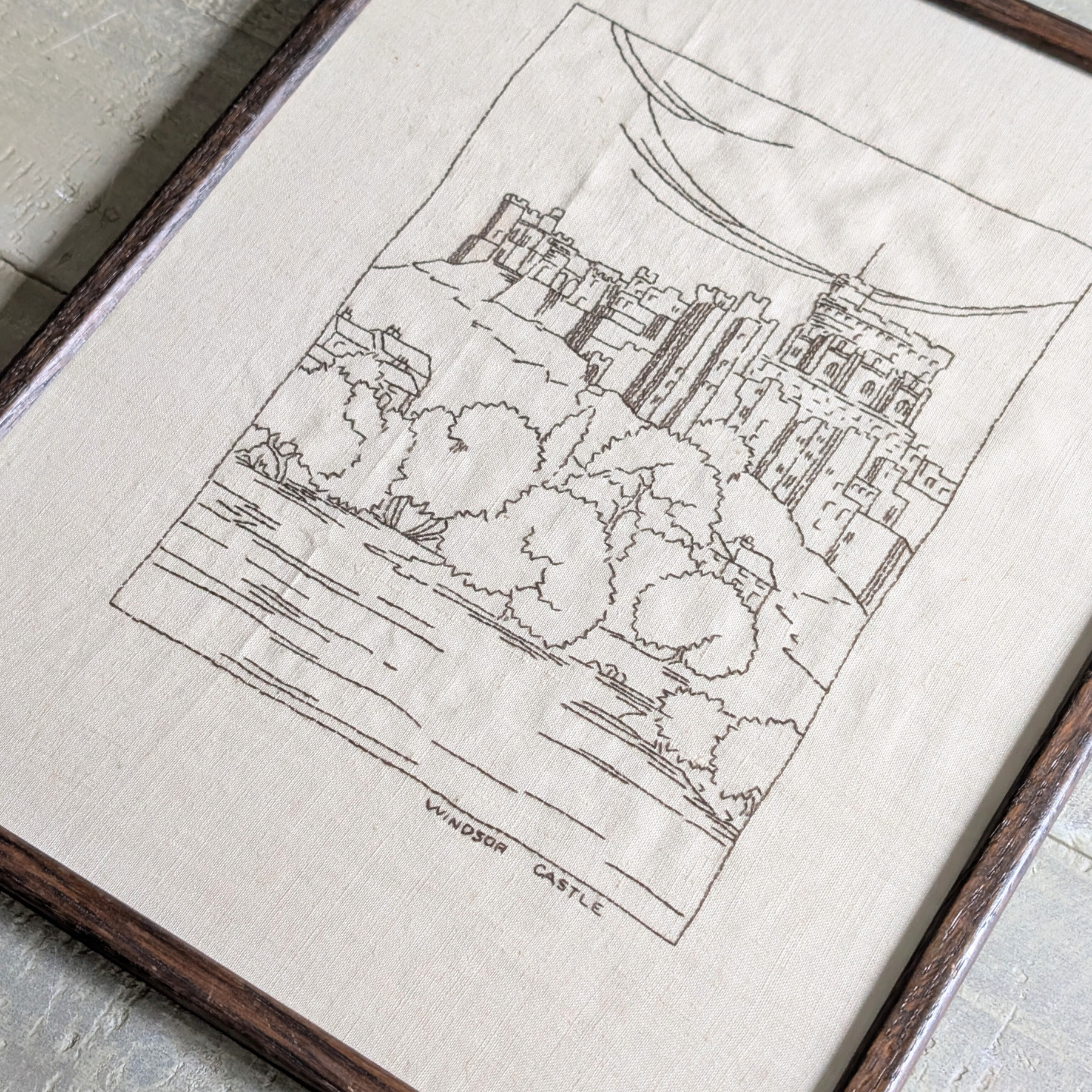 This beautiful embroidery is part of a small collection I sourced, and I just love it! A black thread on a creamy, off-white fabric, this walnut brown framed piece depicts Windsor Castle. The perfect size for popping on a shelf or leaning on a table. A perfect choice for monochrome or neutral colour schemes!