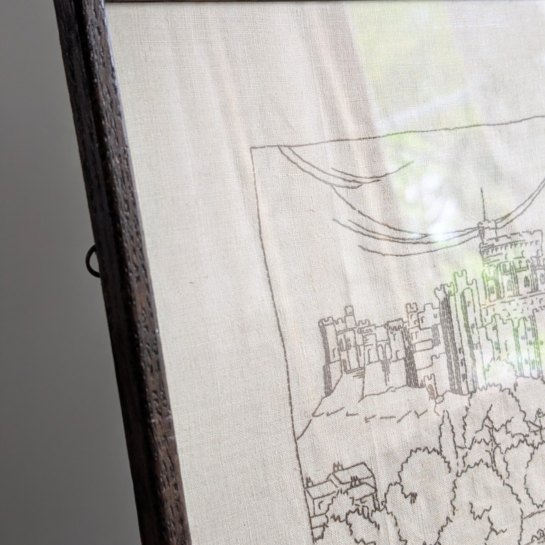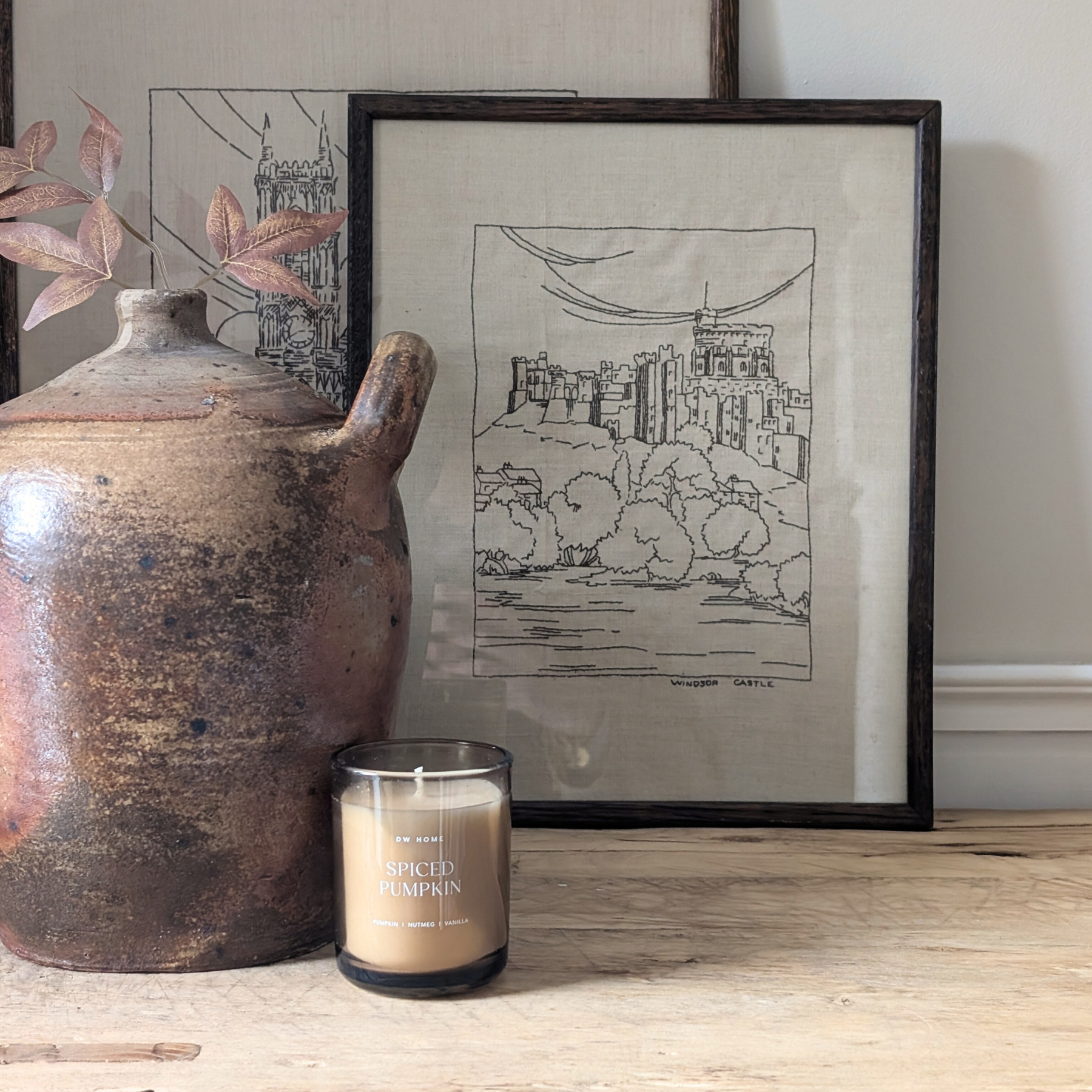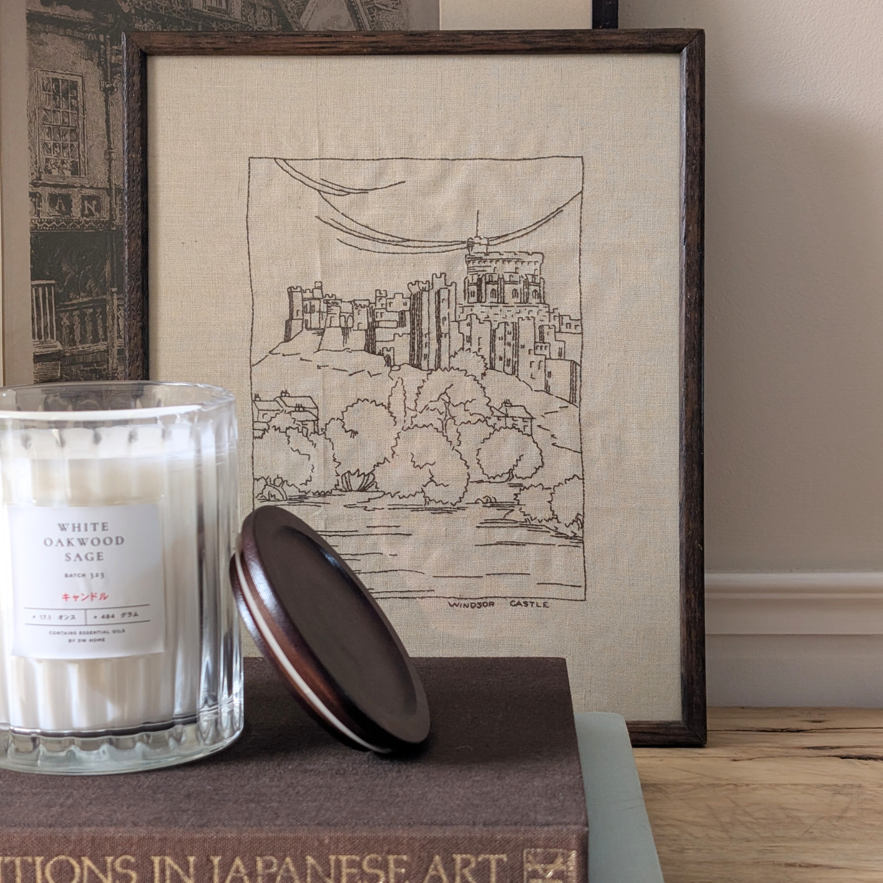 This beautiful embroidery is part of a small collection I sourced, and I just love it! A black thread on a creamy, off-white fabric, this walnut brown framed piece depicts Windsor Castle. The perfect size for popping on a shelf or leaning on a table. A perfect choice for monochrome or neutral colour schemes!