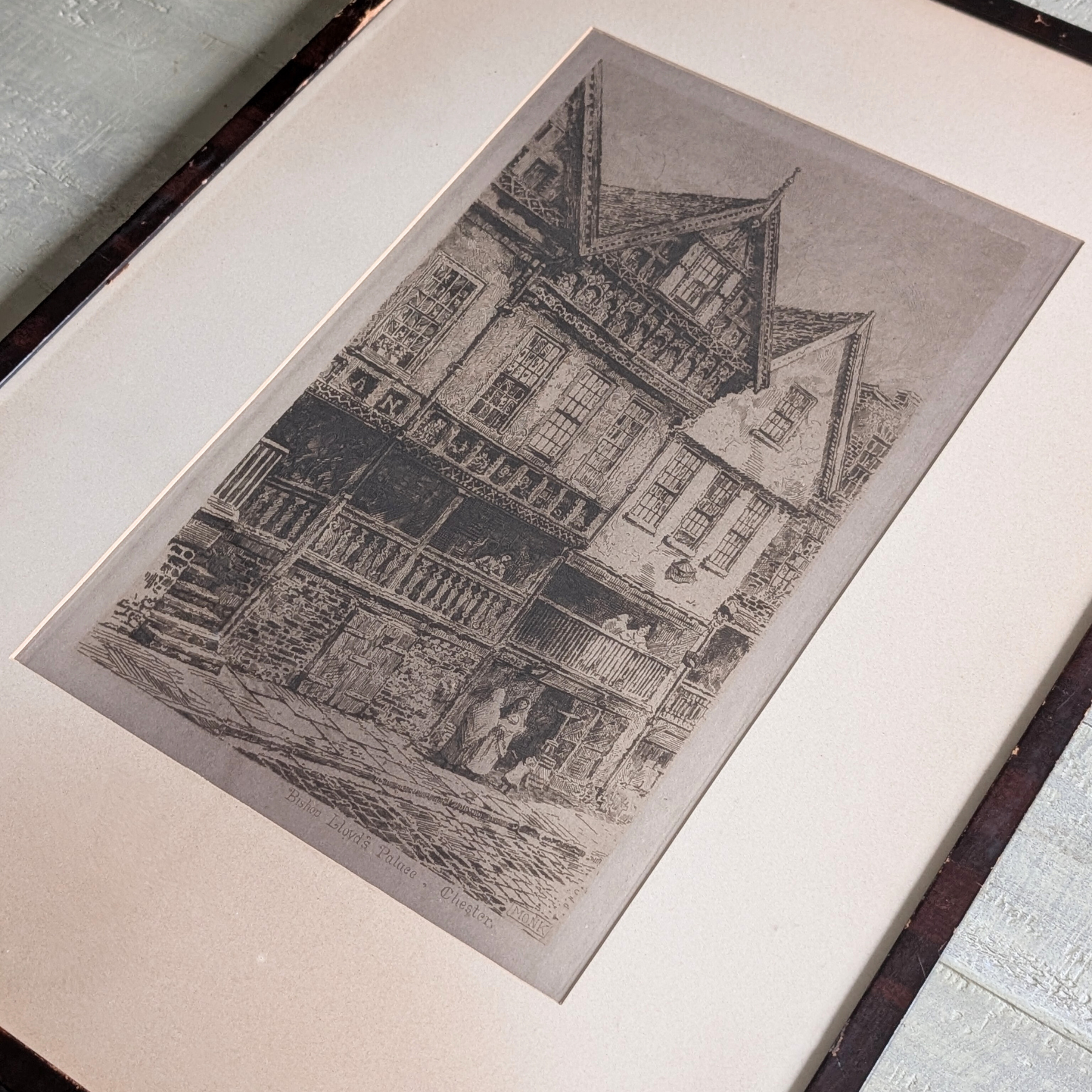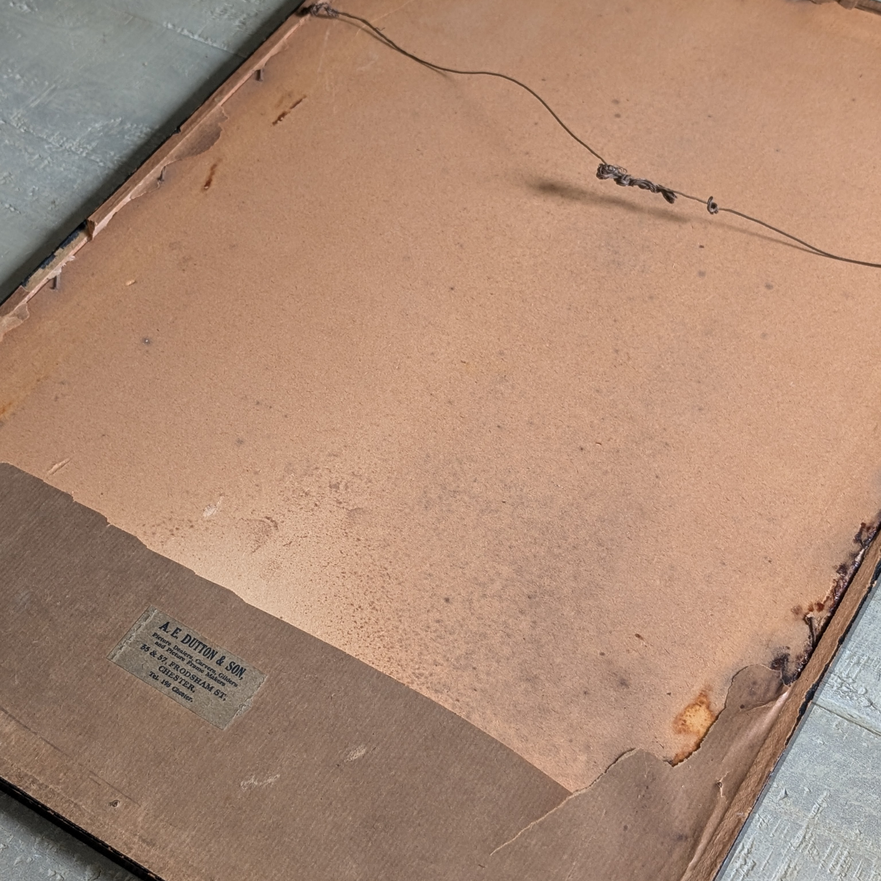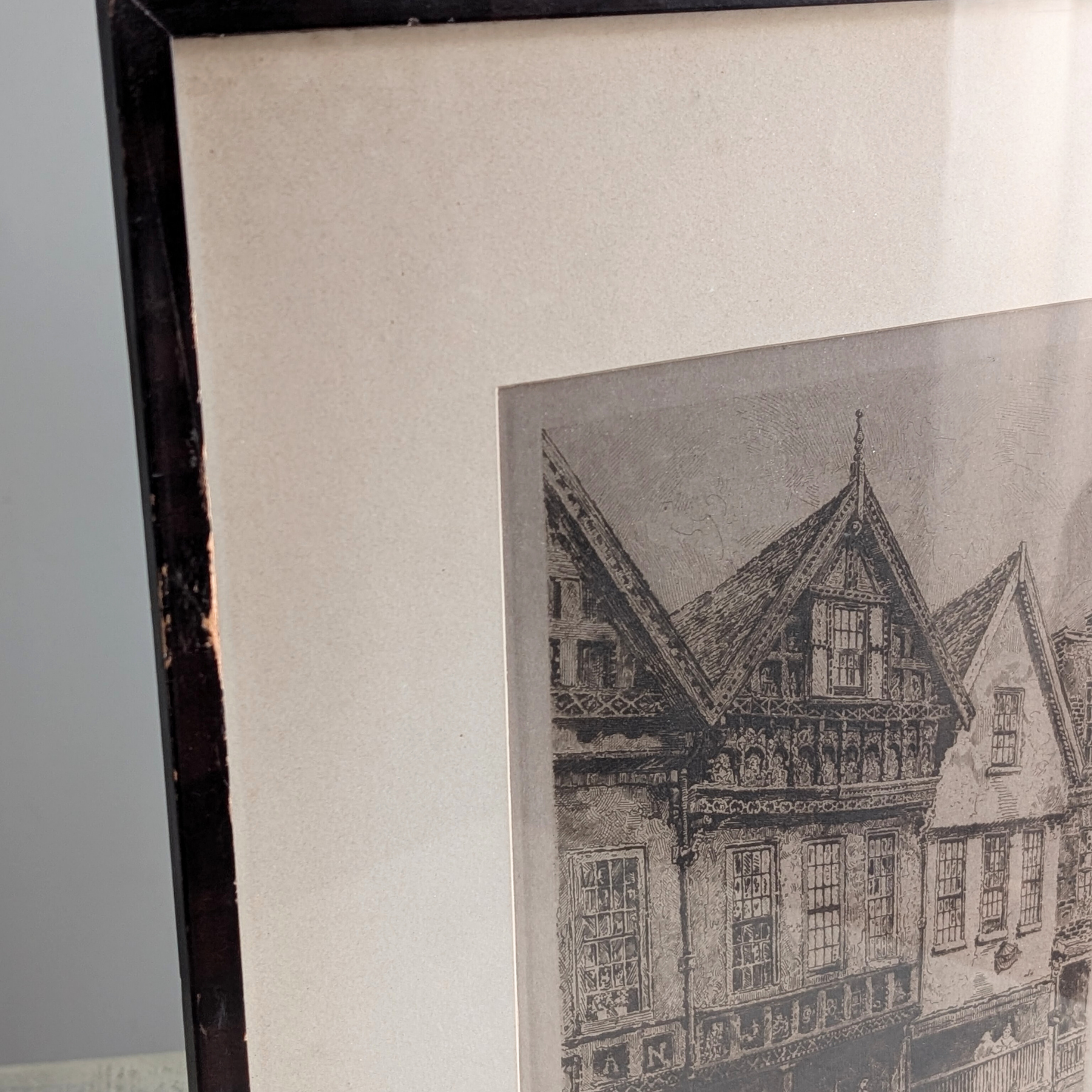 One of a pair of charcoal sketches of architectural beauties in Chester, England, this mounted and framed piece features Bishop Lloyd's House, a Grade 1 listed timber-framed building described by architectural historians as perhaps 'the best house in Chester'. A stunning large-scale frame that would work wonderfully, lent on a console, or hung on an empty piece of wall space to add drama and depth.
