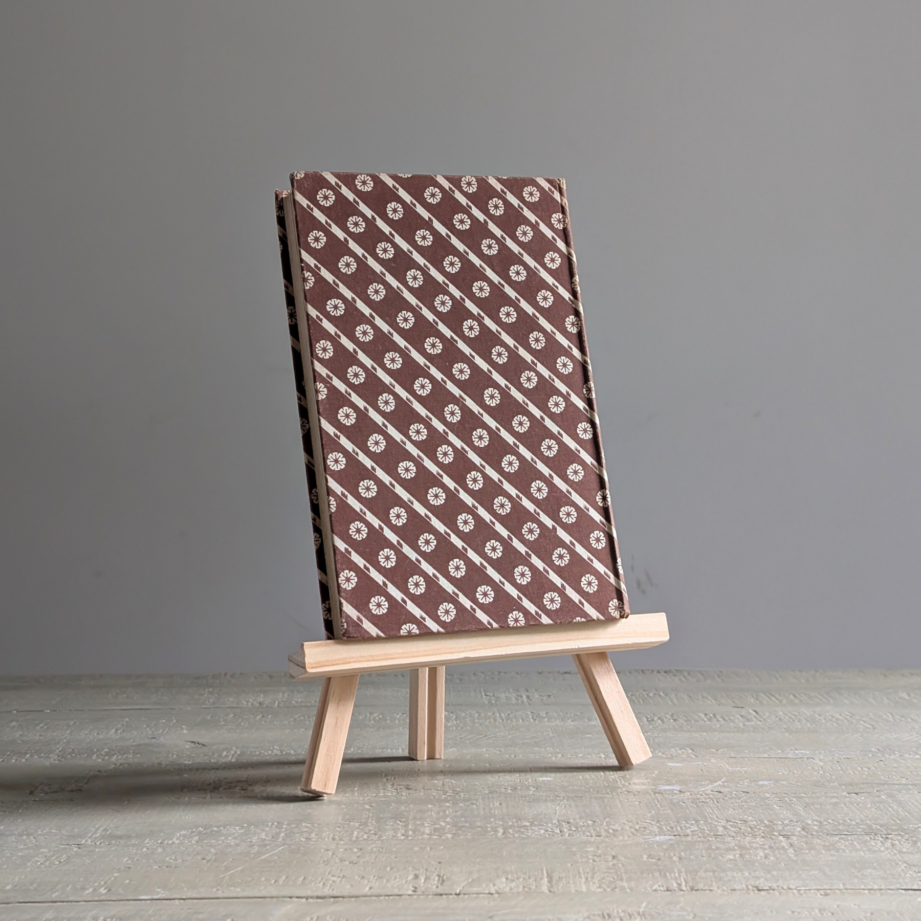 This beautiful book is perfect for styling on a bookshelf! Covered in a beautifully patterned brown and white cloth, it's the perfect option to add a pop of interest to a shelf or table. Our vintage book collection has been curated to style together to create the perfect book stack. Please note, there is some aging to the spine.