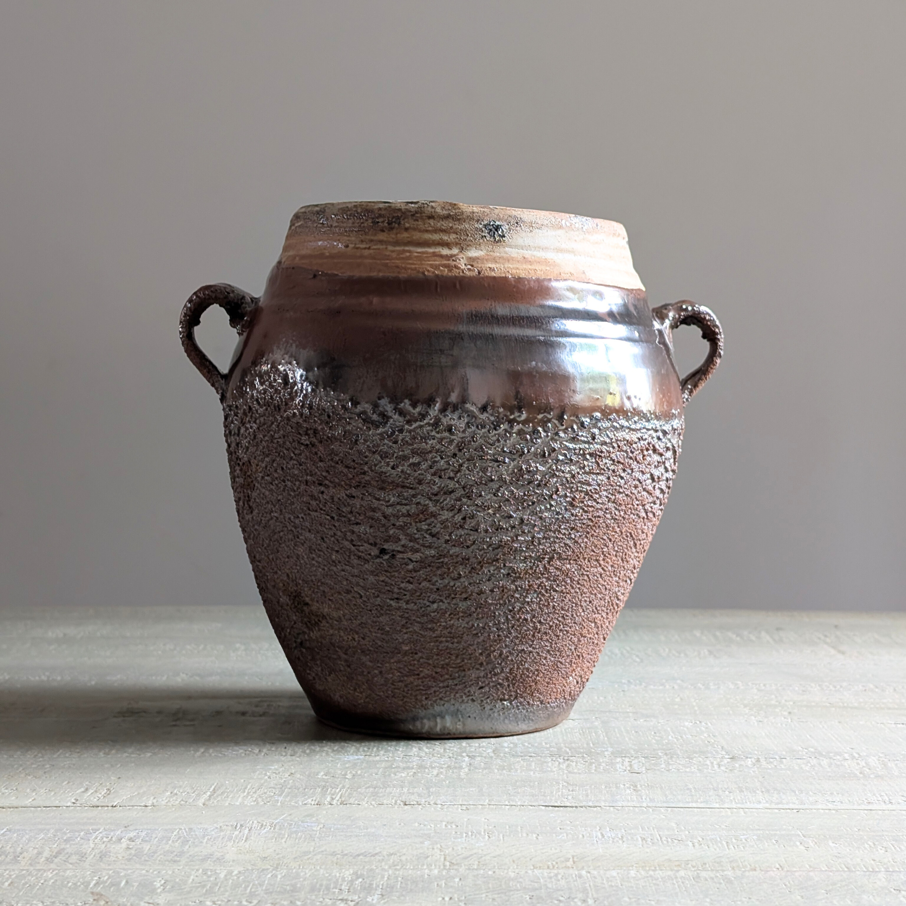 These confit-style pots are almost entirely glazed in a delicious milk chocolate brown colour. Super textural and with two gorgeous dinky ears, these unique vessels are an ideal display piece for neutral homes. Style alone or pop a plant inside for instant timeless charm.
