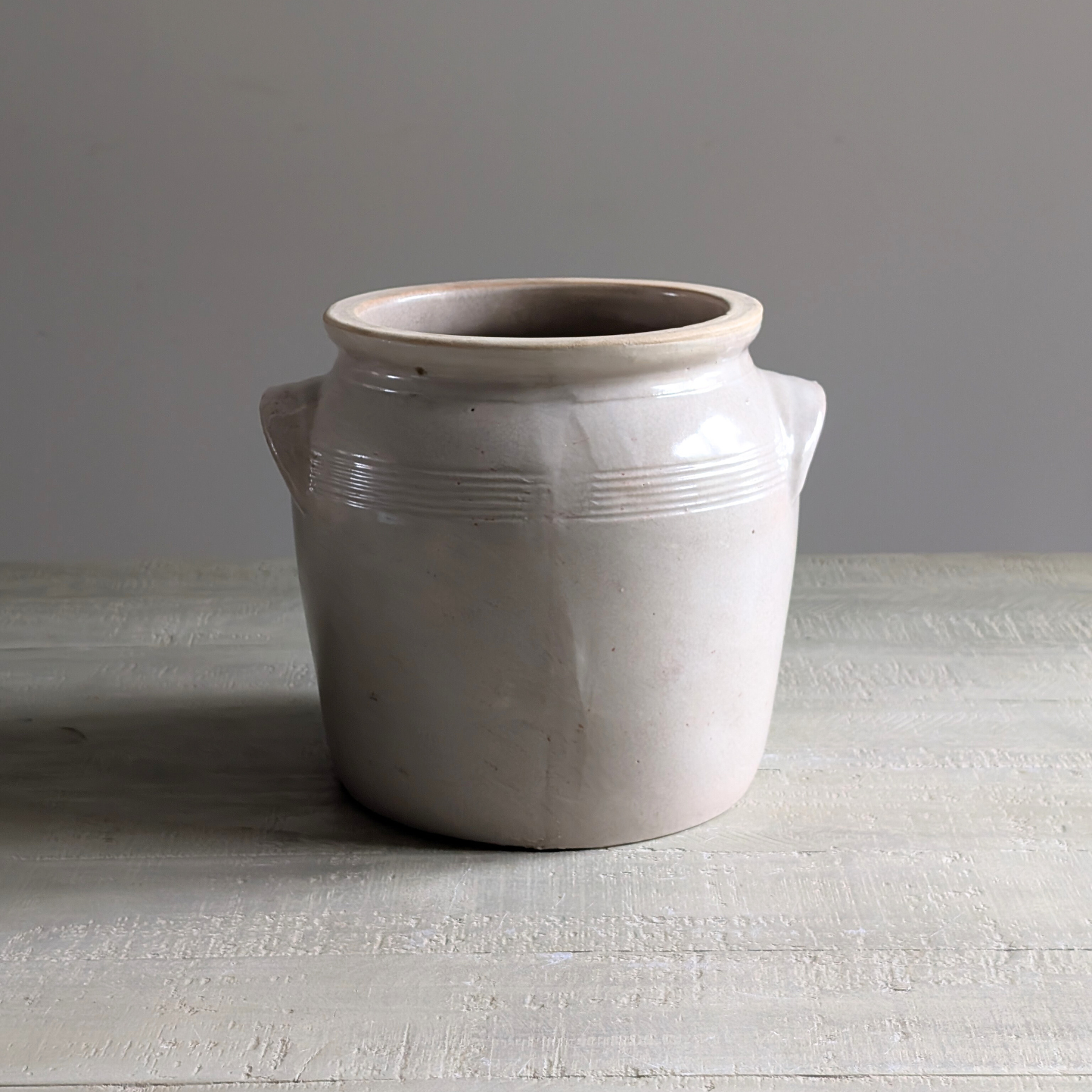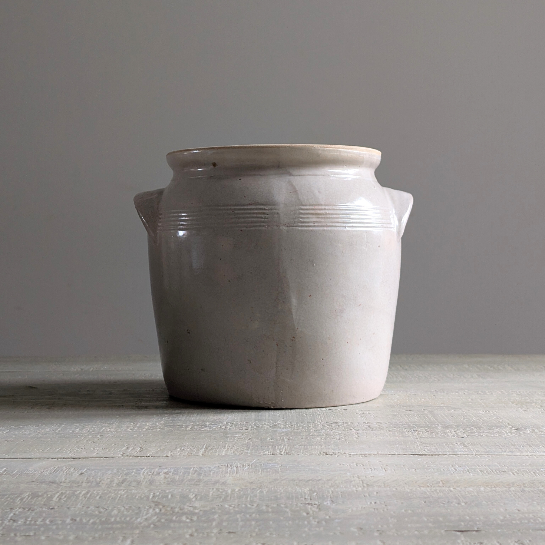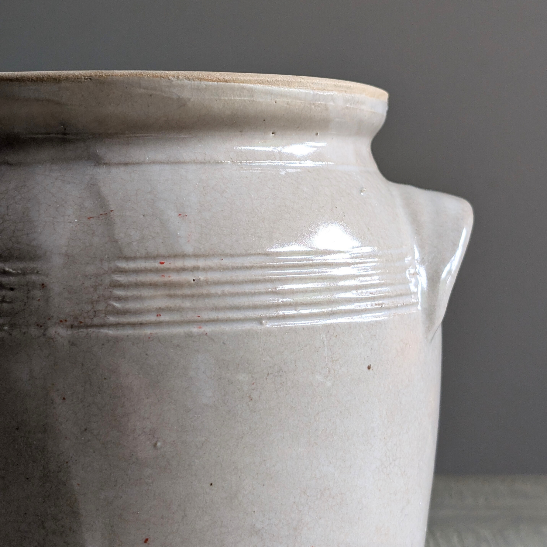 This double-handled French confit pot is a pale grey tone. An ideal piece for housing your smaller utensils or even a floral bouquet.