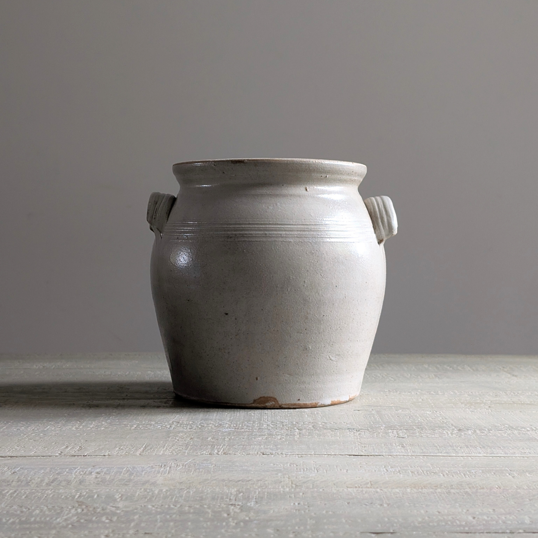 This double-handled French confit pot is a beautiful warm neutral shade. An ideal piece for housing your utensils or a floral bouquet.