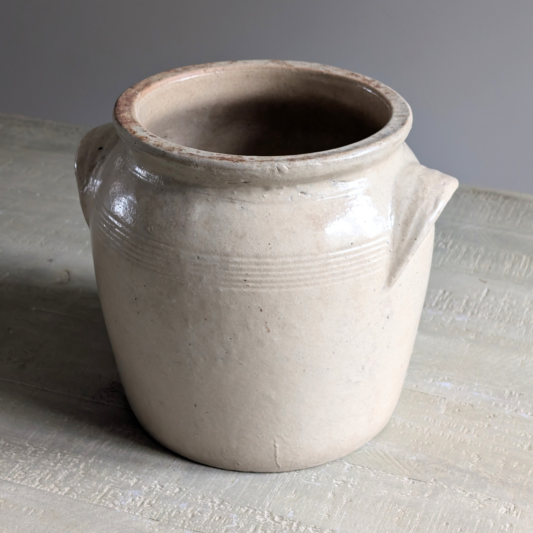 This double-handled French confit pot is a beautiful creamy shade. An ideal piece for housing your utensils or a floral bouquet to bring a touch of French farmhouse beauty to your home.