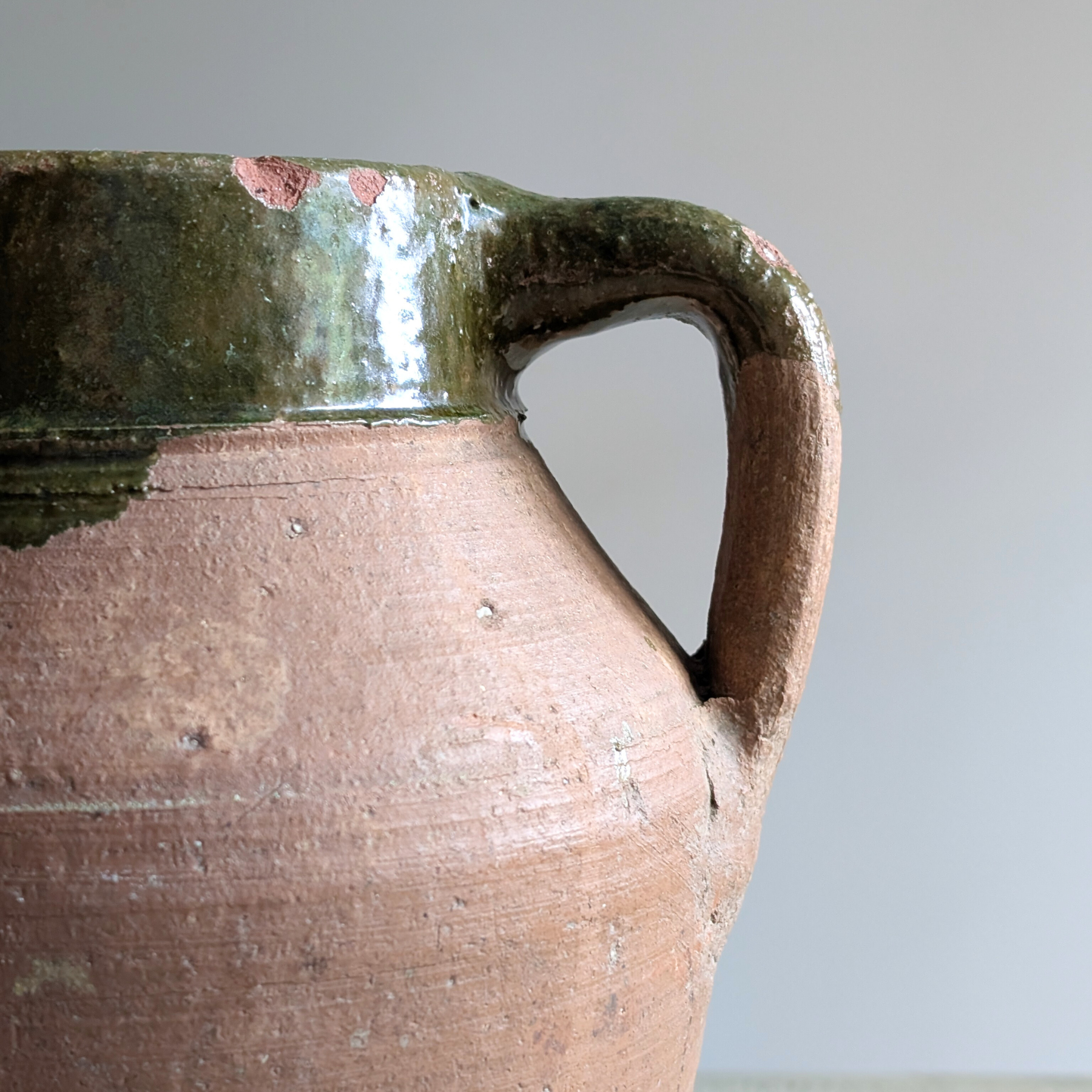 Originally from Turkey, this classic terracotta piece features the most gorgeous mossy green glaze around the very top. With a single handle, the simple silhouette really allows the glaze to be the star of the show!
