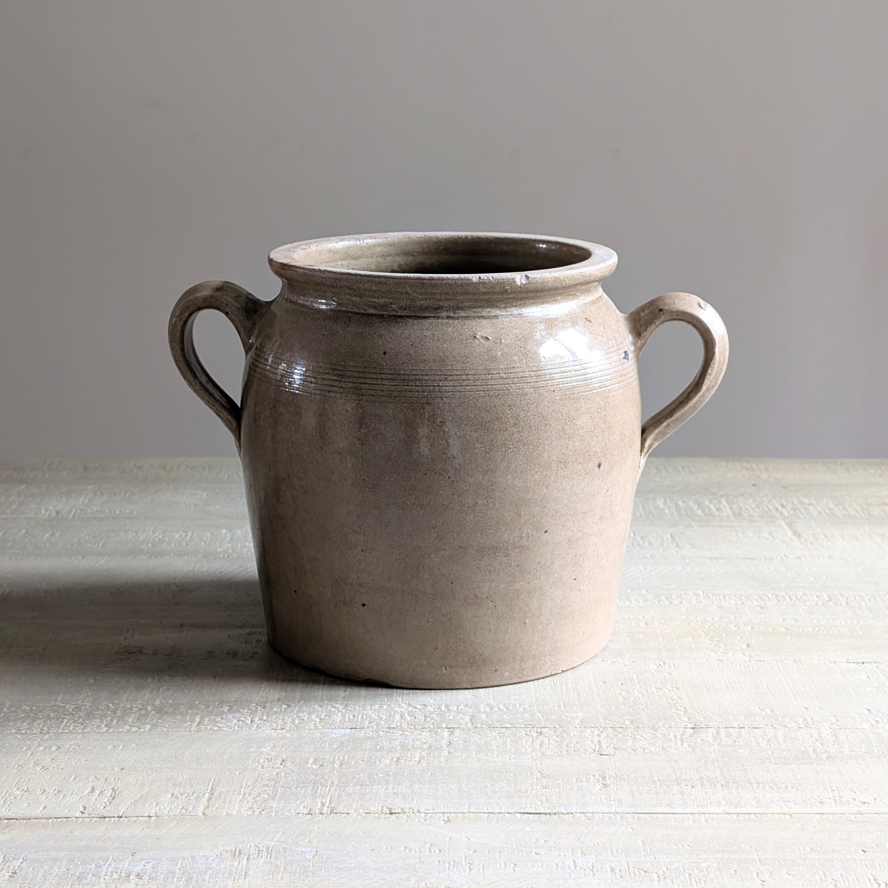 A really sweet, large loop-eared confit pot, this pale neutral vessel has rare loop-style 'ears' which make it even more special. Style alone or display your favourite seasonal bouquet to add some French country farmhouse charm to your home.