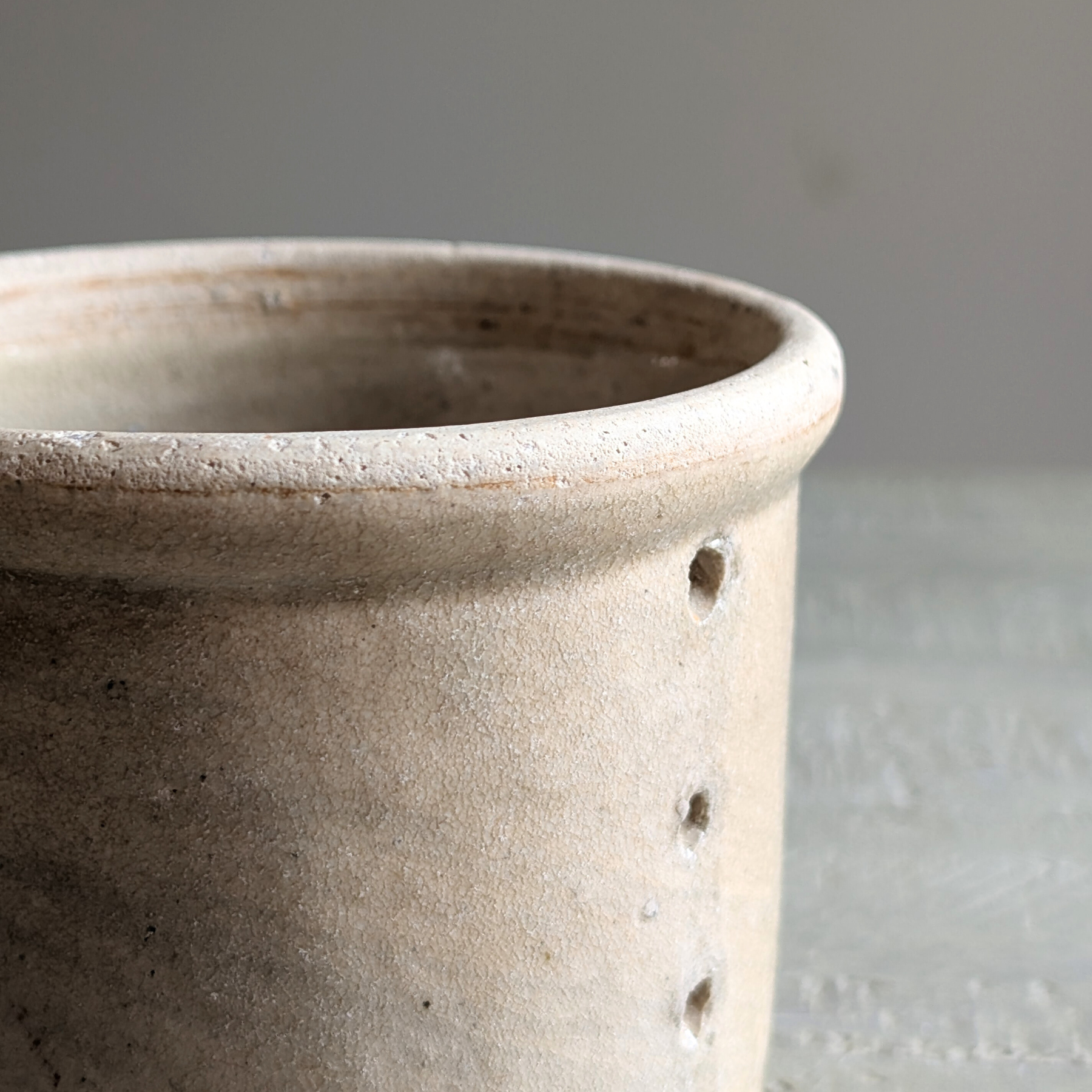This antique French cheese strainer is a must for creating that farmhouse look in your kitchen. This clay pot was formed by hand and therefore has an ever so slightly imperfectly round shape which just adds to its charm. Style on shelves, use to wash and drain berries, to house a tealight, or even for smaller plants. The holes provide the perfect drainage for plants.
