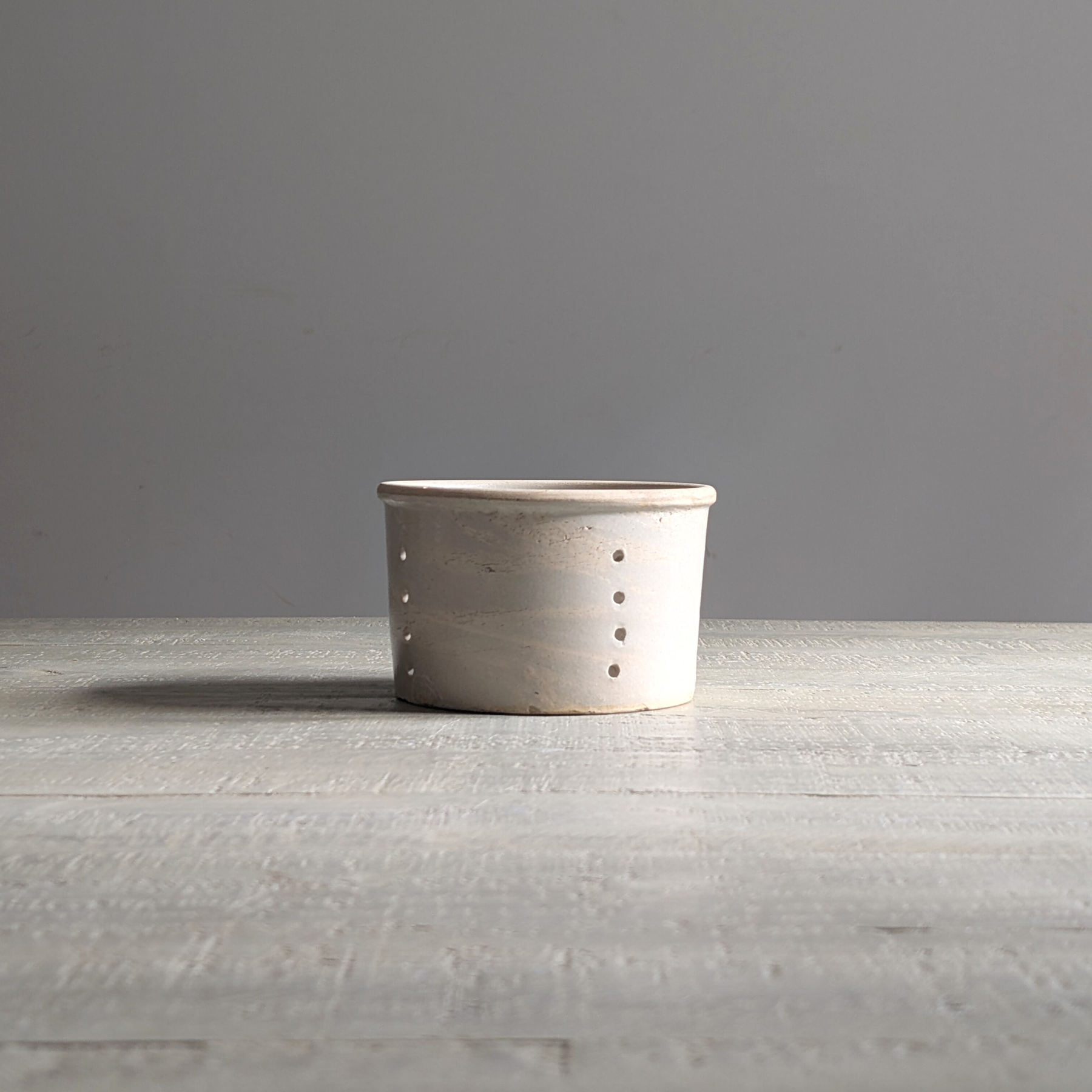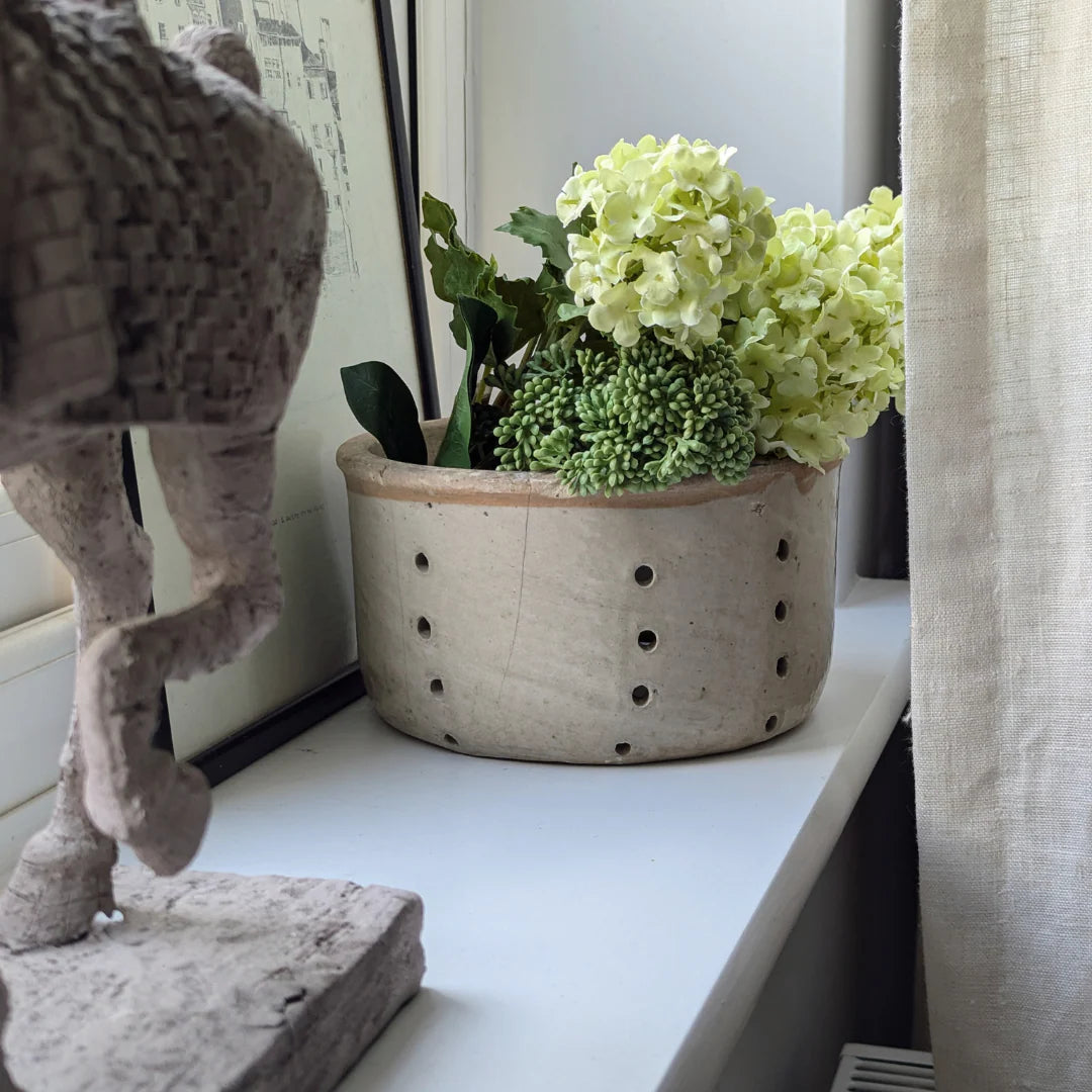 This antique French cheese strainer is a must for creating that farmhouse look in your home. This clay pot was formed by hand and therefore has an ever so slightly imperfectly round shape which only adds to its charm. Use it to wash and drain berries, to house a candle or even for a small floral arrangement. The holes provide the perfect drainage for plants.