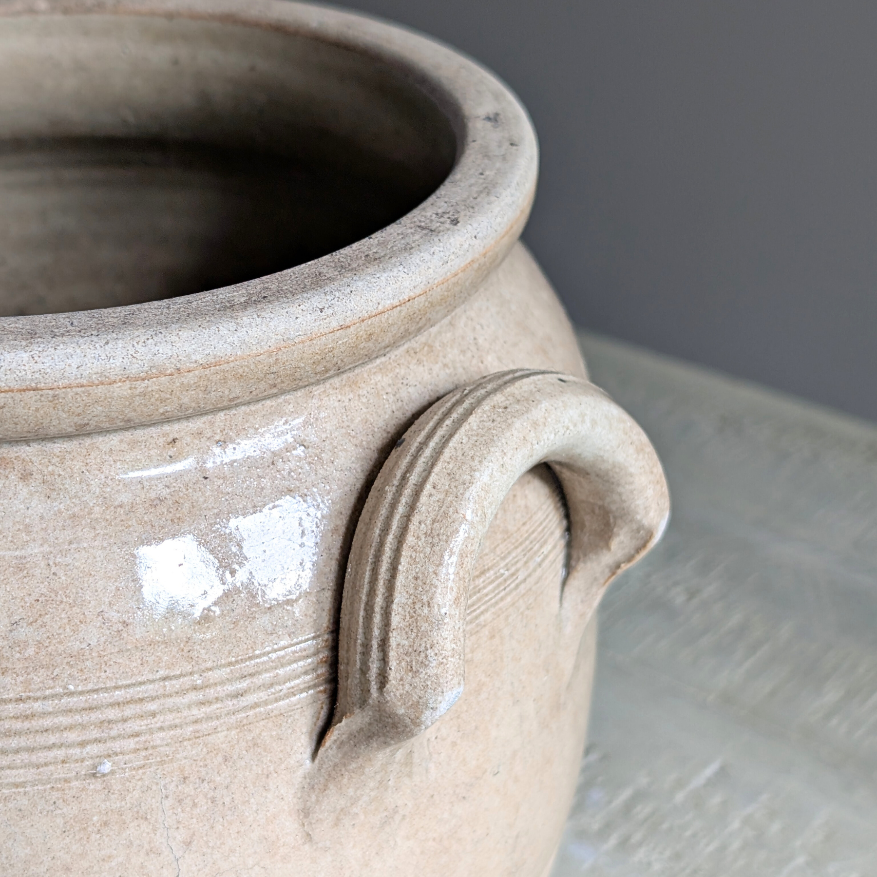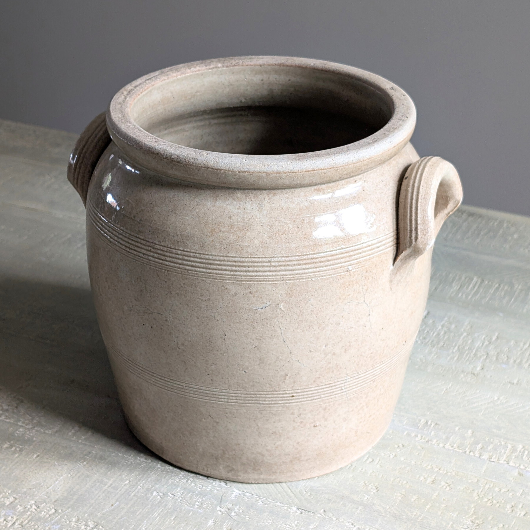 This double-handled French confit pot is a beautiful warm neutral shade. An ideal piece for housing your utensils or a floral bouquet.