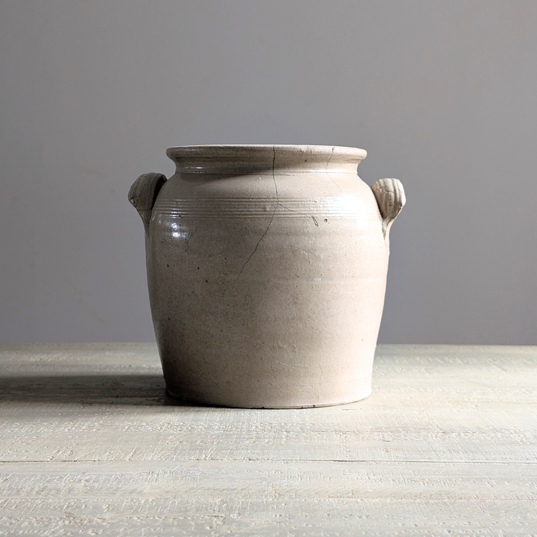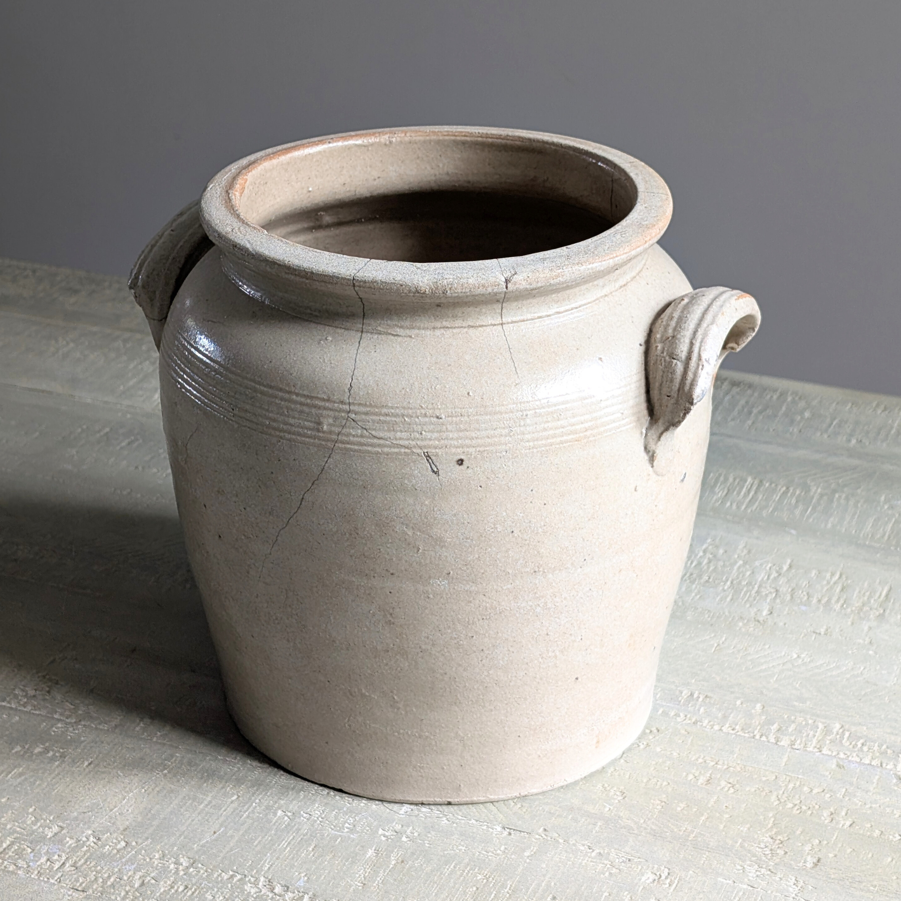 This double-handled French confit pot is a beautiful warm neutral shade. An ideal piece for housing your utensils or a floral bouquet.