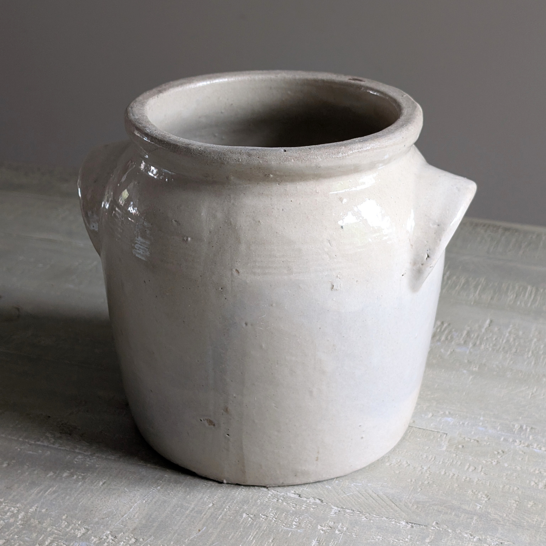 This double-handled French confit pot is a pale grey tone. An ideal piece for housing your smaller utensils or even a floral bouquet.