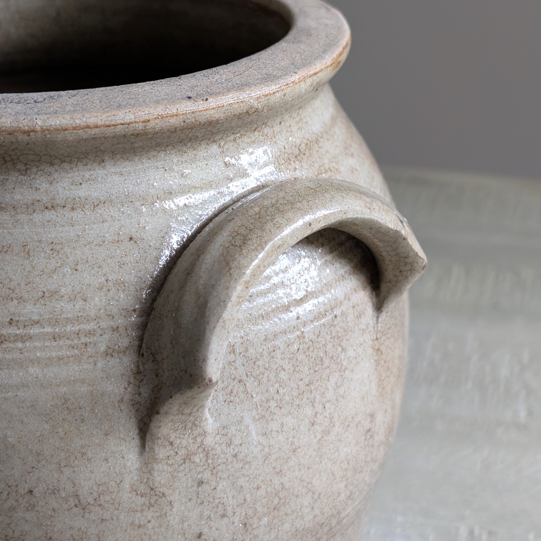 This double-handled French confit pot is a beautiful earthy neutral shade. An ideal piece for housing your utensils or a floral bouquet to bring a touch of French farmhouse beauty to your home.