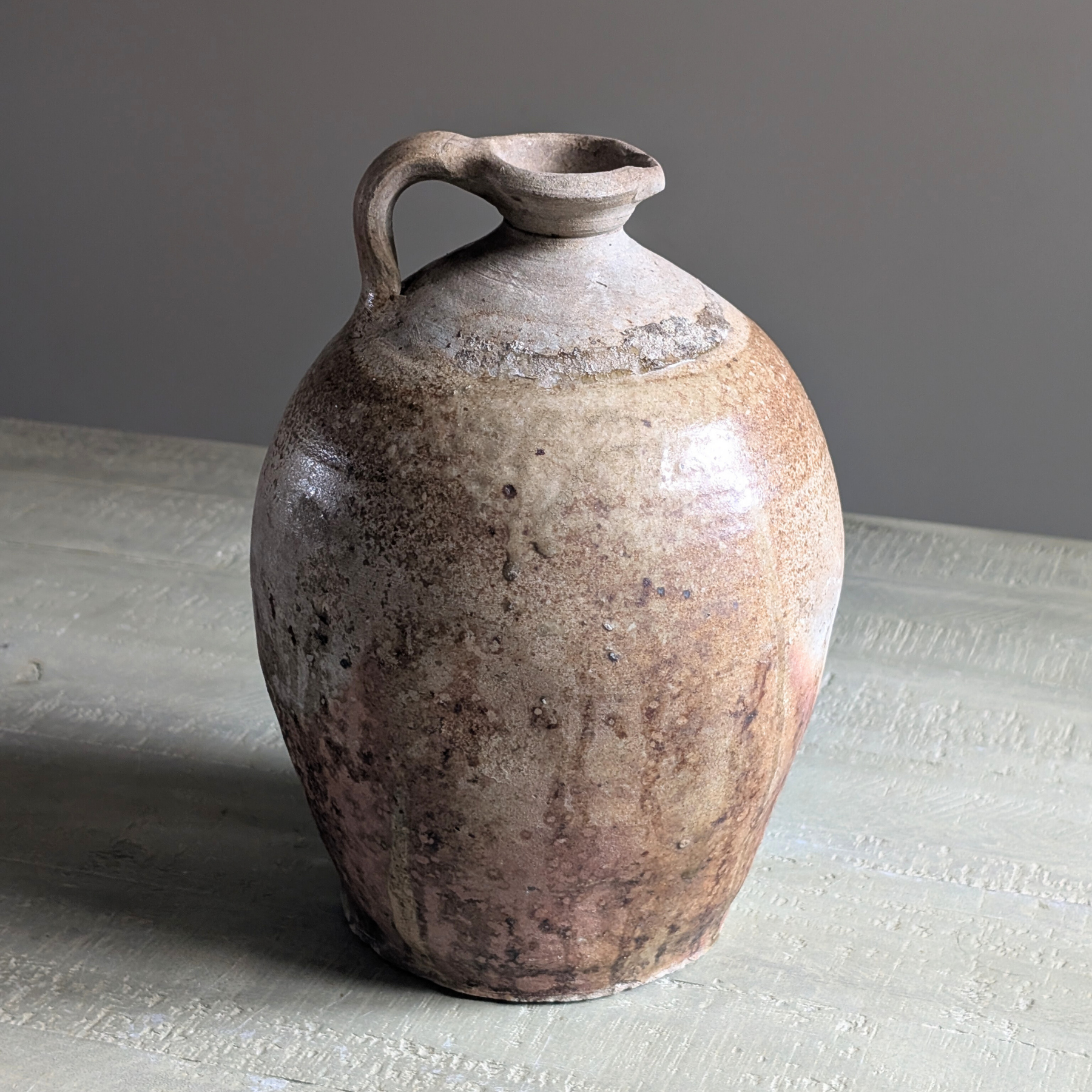 This medium antique oil jug with a mix of muted greys and warm tones and classic shape, is ideal for kitchen styling. Pair with one of our smaller antique jugs for a layered look.