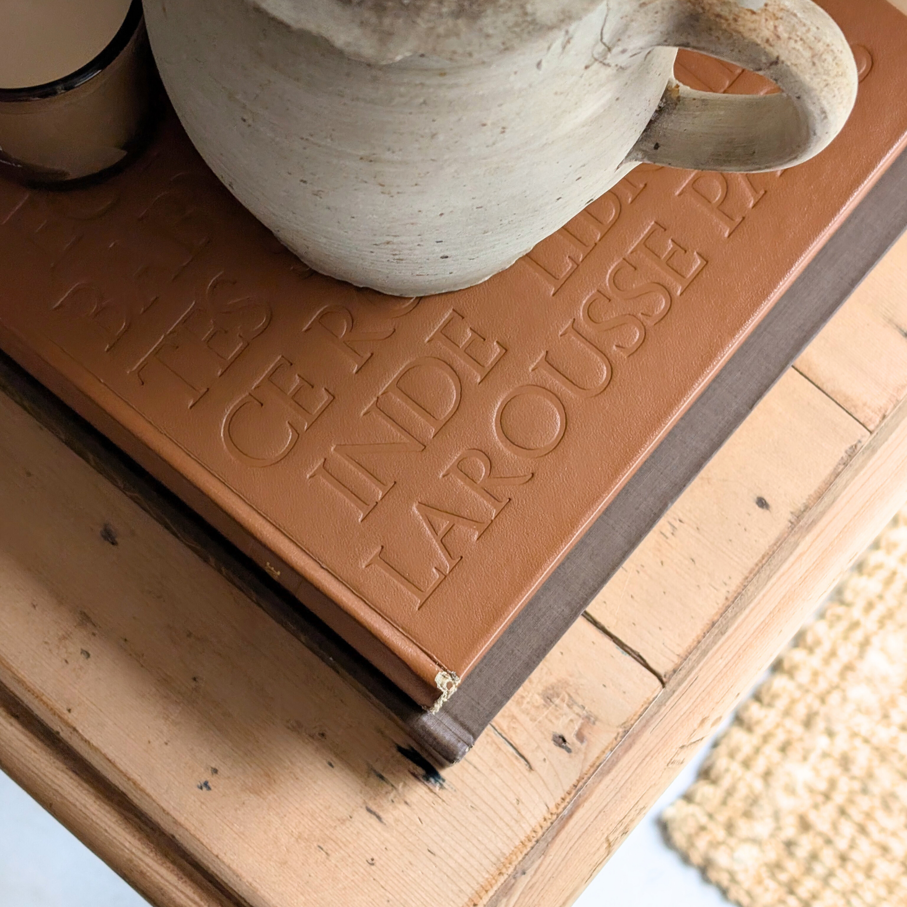 A stunning find from Paris, this beautiful read is bound in an embossed tan leather. Style up on a bookshelf, coffee or console table to add aged character to your space. A lovely choice for neutral homes! Please note, this book does have some visible signs of wear to the spine.