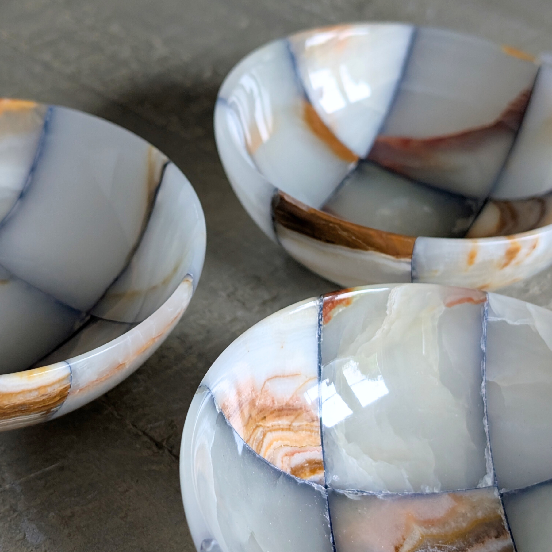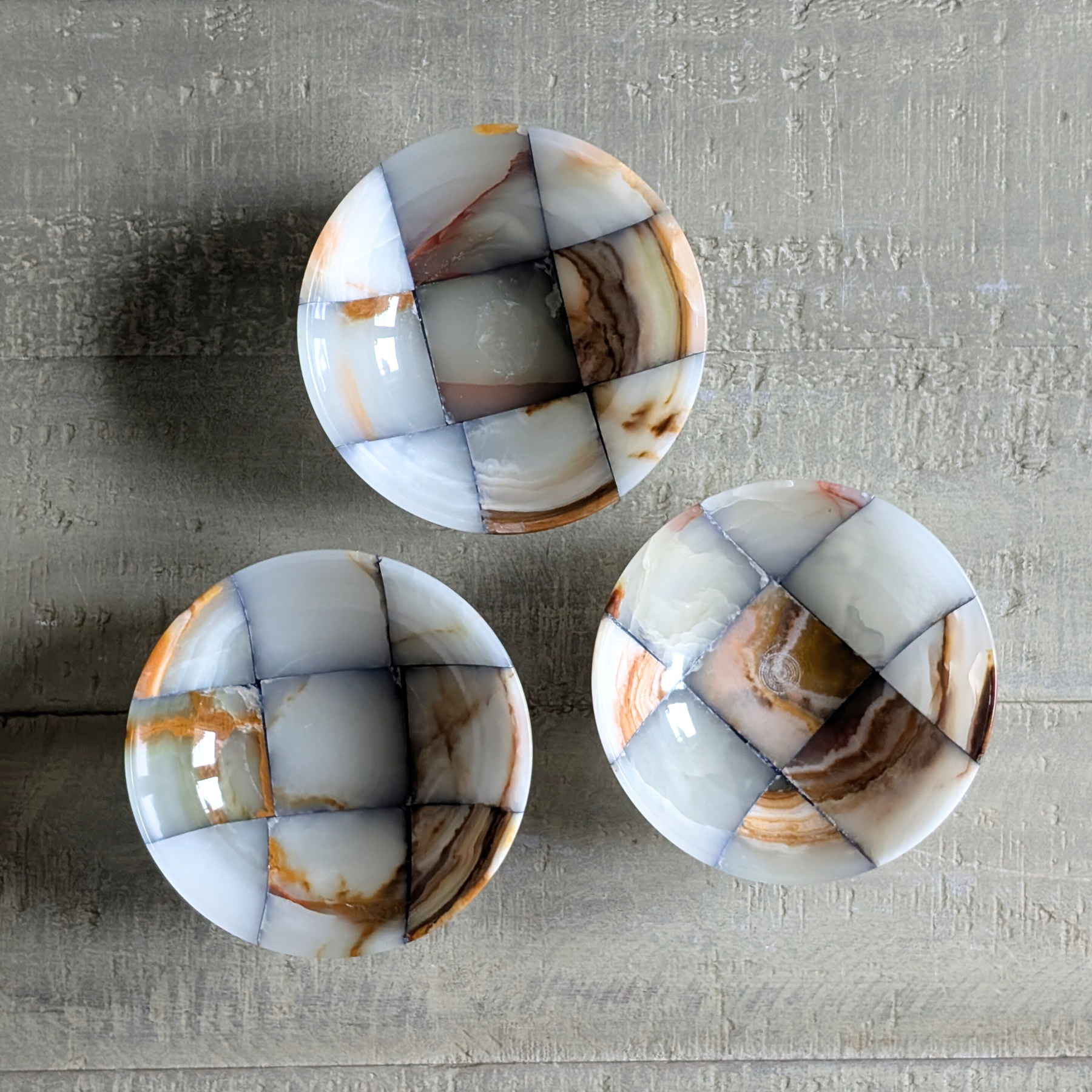 These stunning checkerboard onyx bowls are a decorative dream! The perfect, neutral accent piece to add a splash of pattern to a coffee, side, or console table! Use to hold your keys, loose change, matches, or trinket bits. A unique and beautiful gift idea.