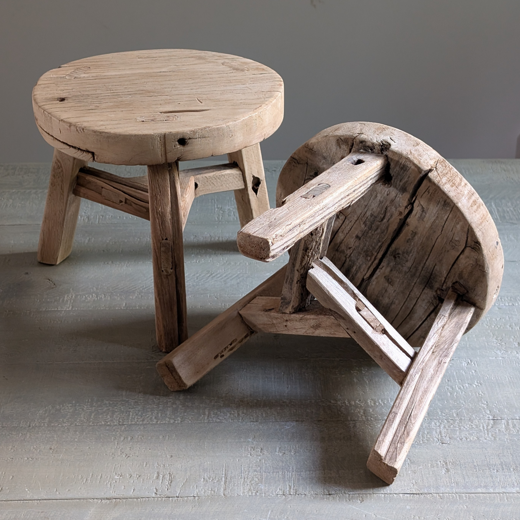 Our limited collection of circular reclaimed wooden milking stools are each one-of-a-kind. Ideal styled in a cabinet or laundry room, or used as a rustic plant stand, the styling opportunities with this piece are truly endless. Handmade with reclaimed wood, each piece has its own individual signs of age which add to its charm and character.