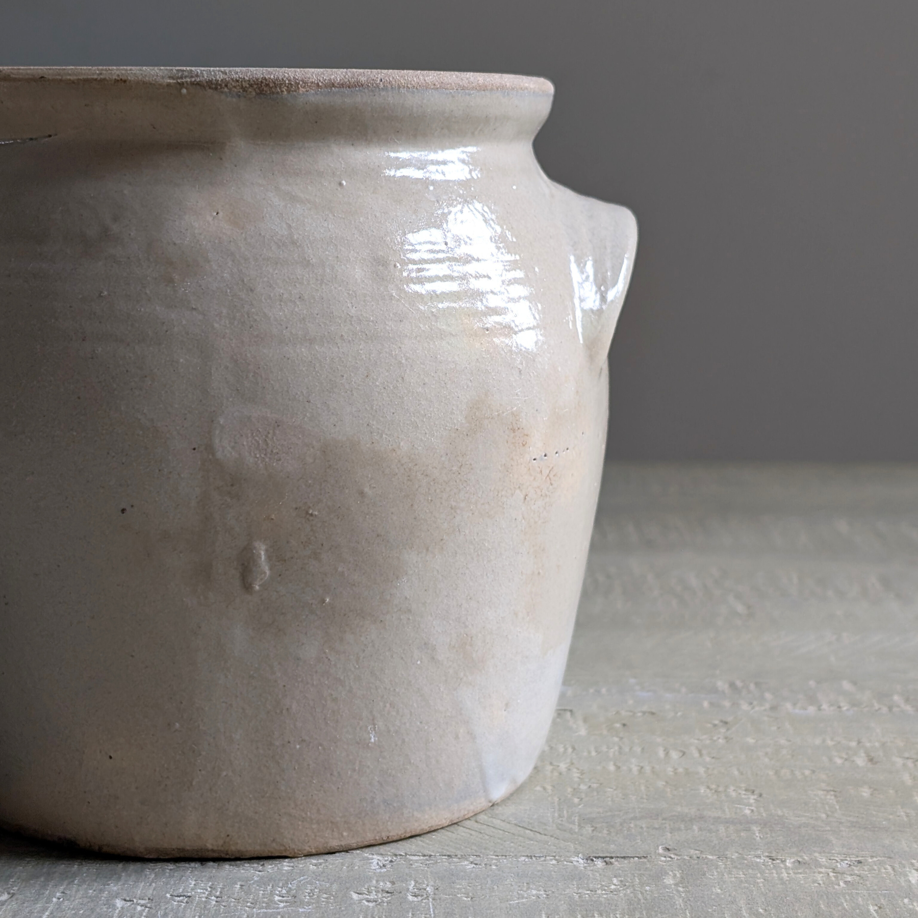 This double-handled French confit pot is a beautiful mottled cream shade. An ideal piece for housing your utensils or a floral bouquet.