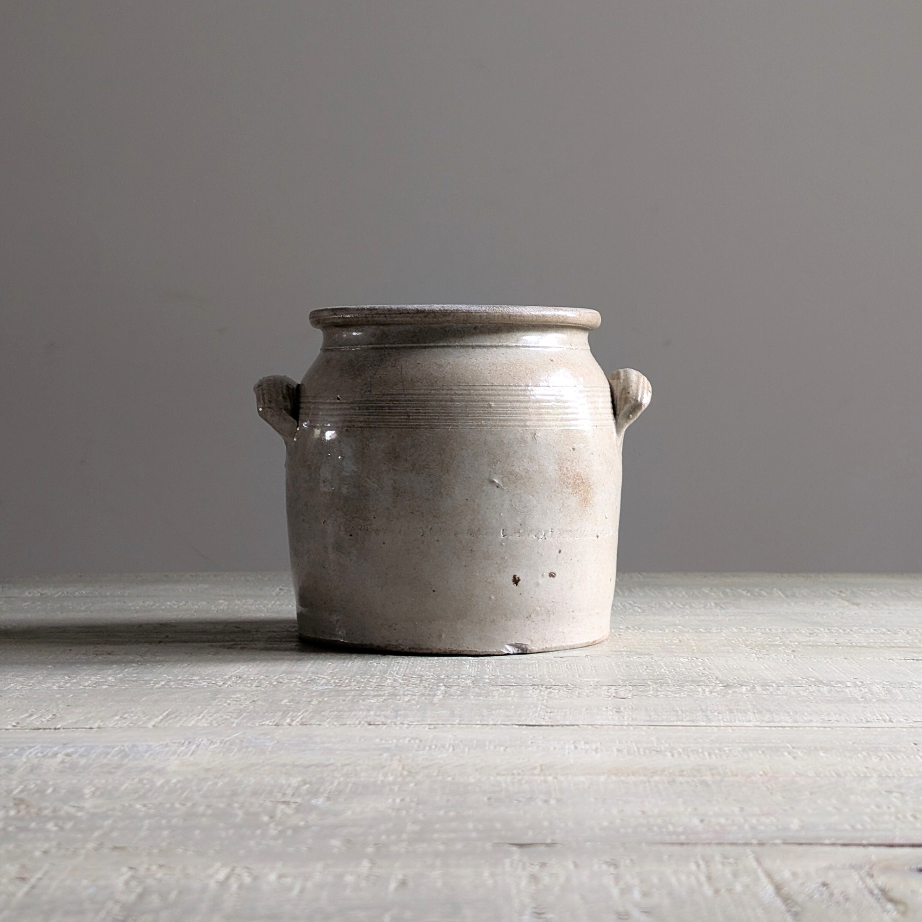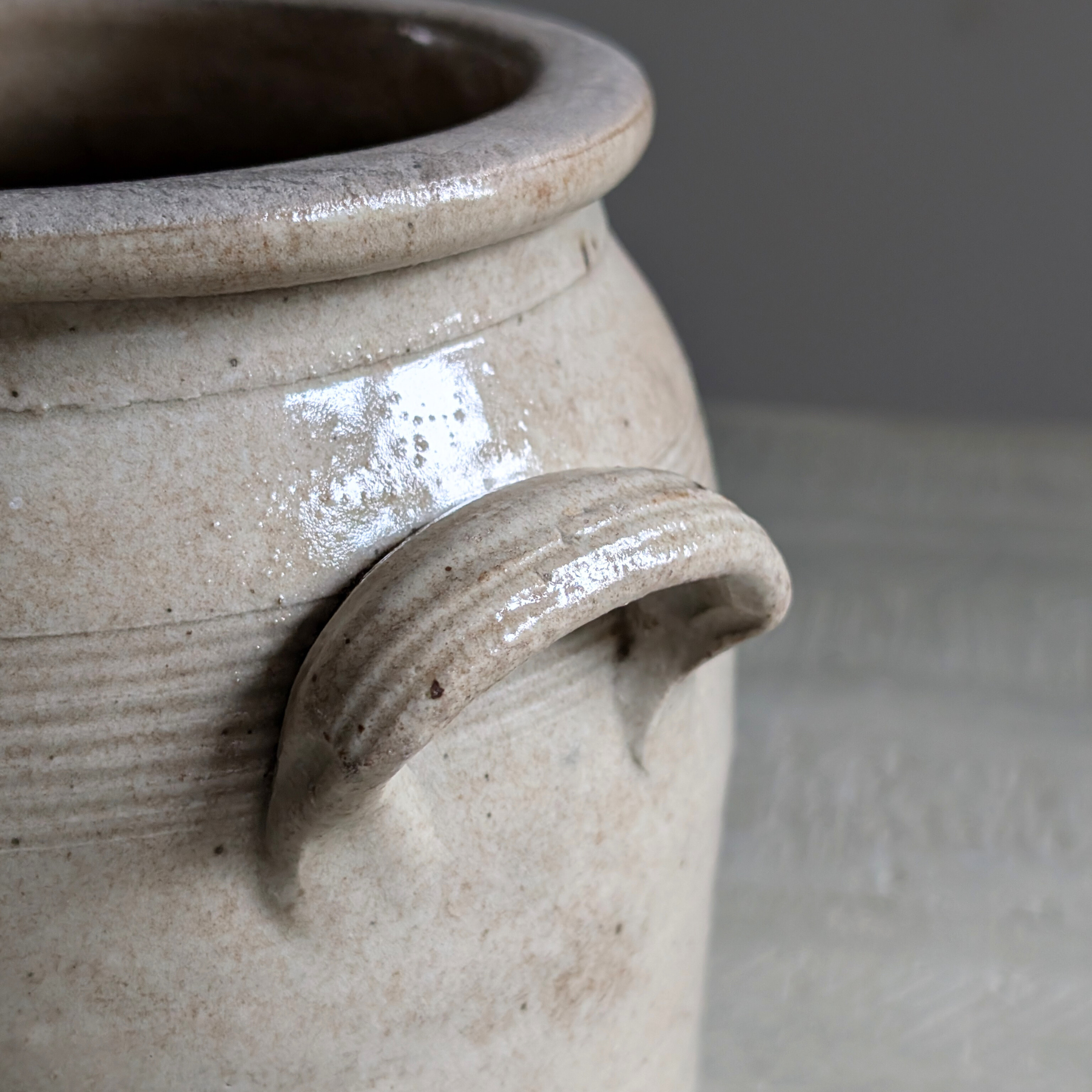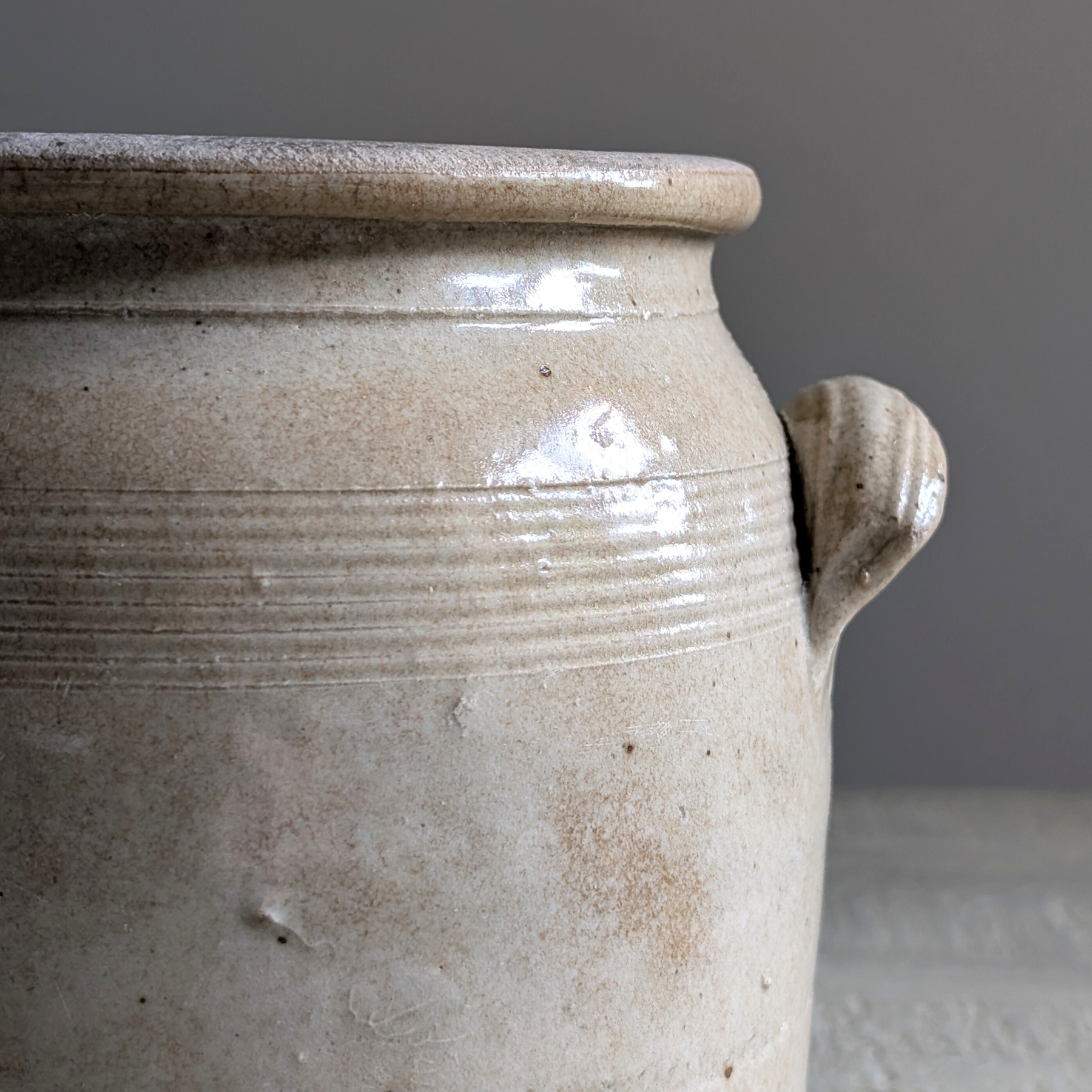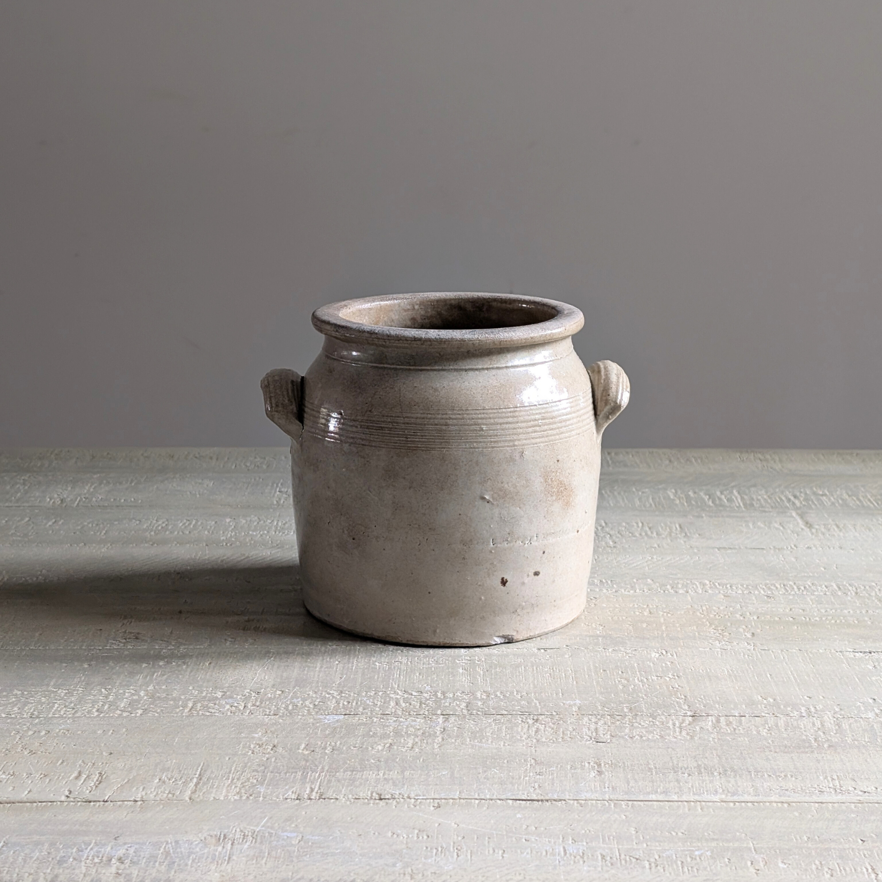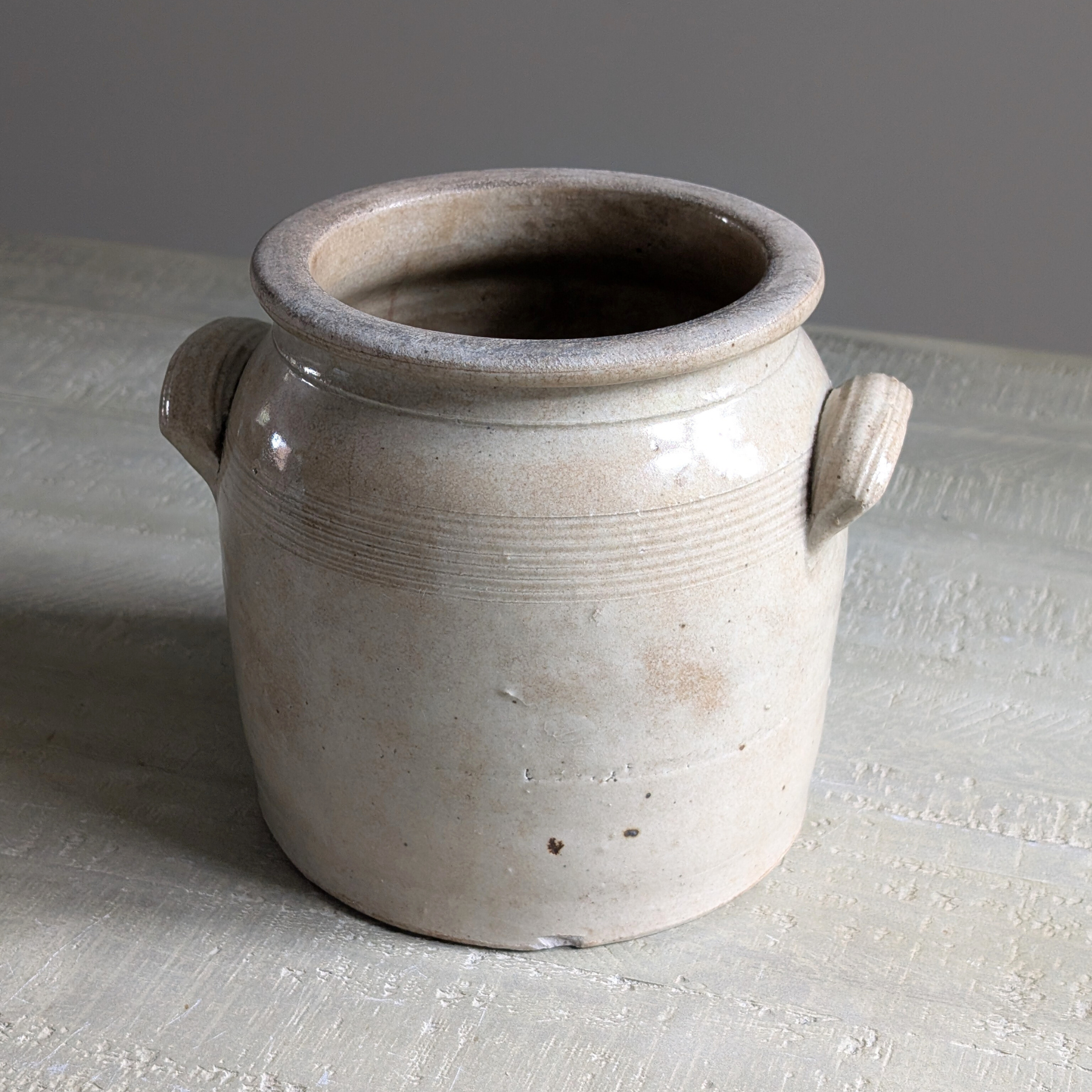 This double-handled French confit pot is a beautiful warm neutral shade. An ideal piece for housing your utensils or a floral bouquet.