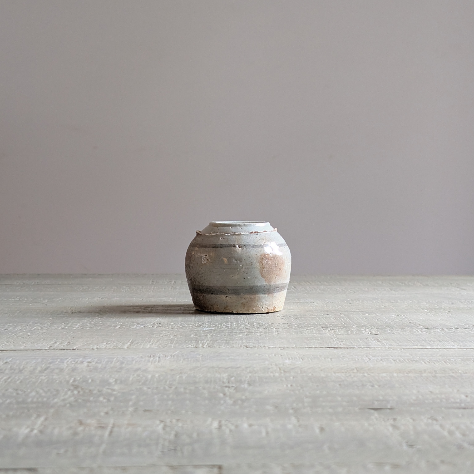 This beautiful 19th-century ginger jar has a stunning blueish-grey colouring. Featuring a simple design of darker grey bands, this one-of-a-kind piece would be perfect for styling just about any shelf, cabinet, or corner.