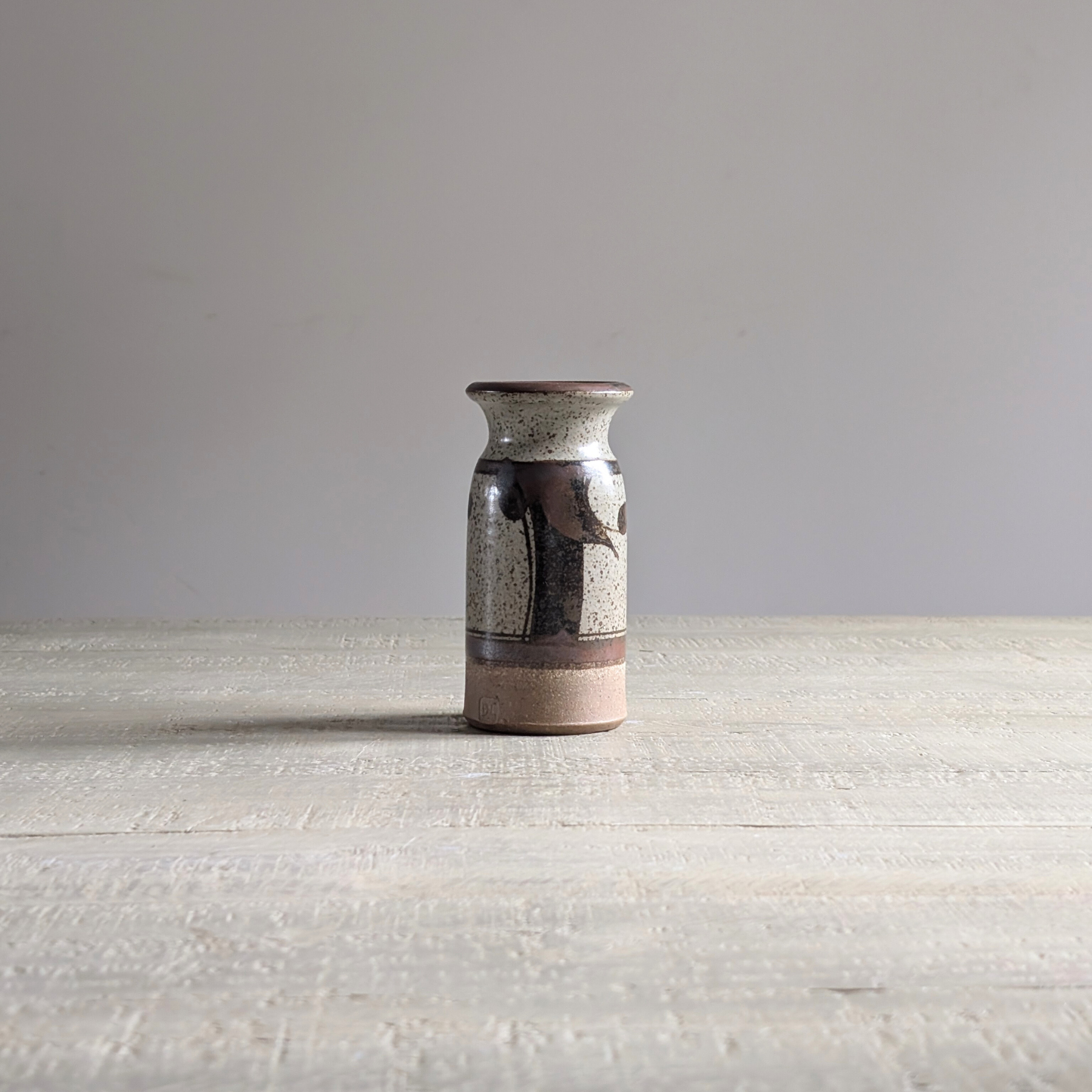 This sweet little Studio Pottery vase would make such a lovely gift! It can be used as a bud vase, or as a decorative reed diffuser. A sweet, slim silhouette and speckled grey and coffee brown glaze give this lovely little vessel such a charming and unique look.
