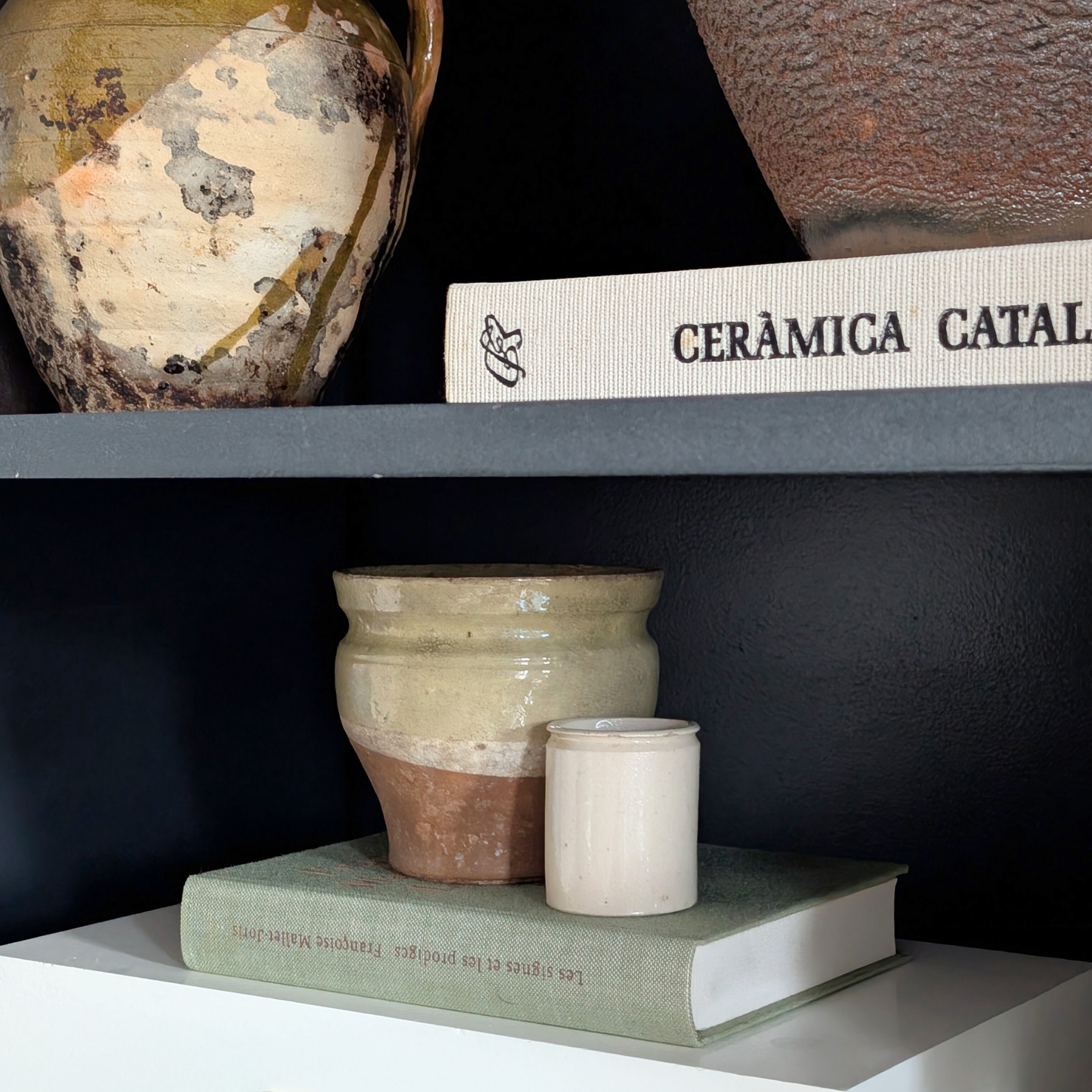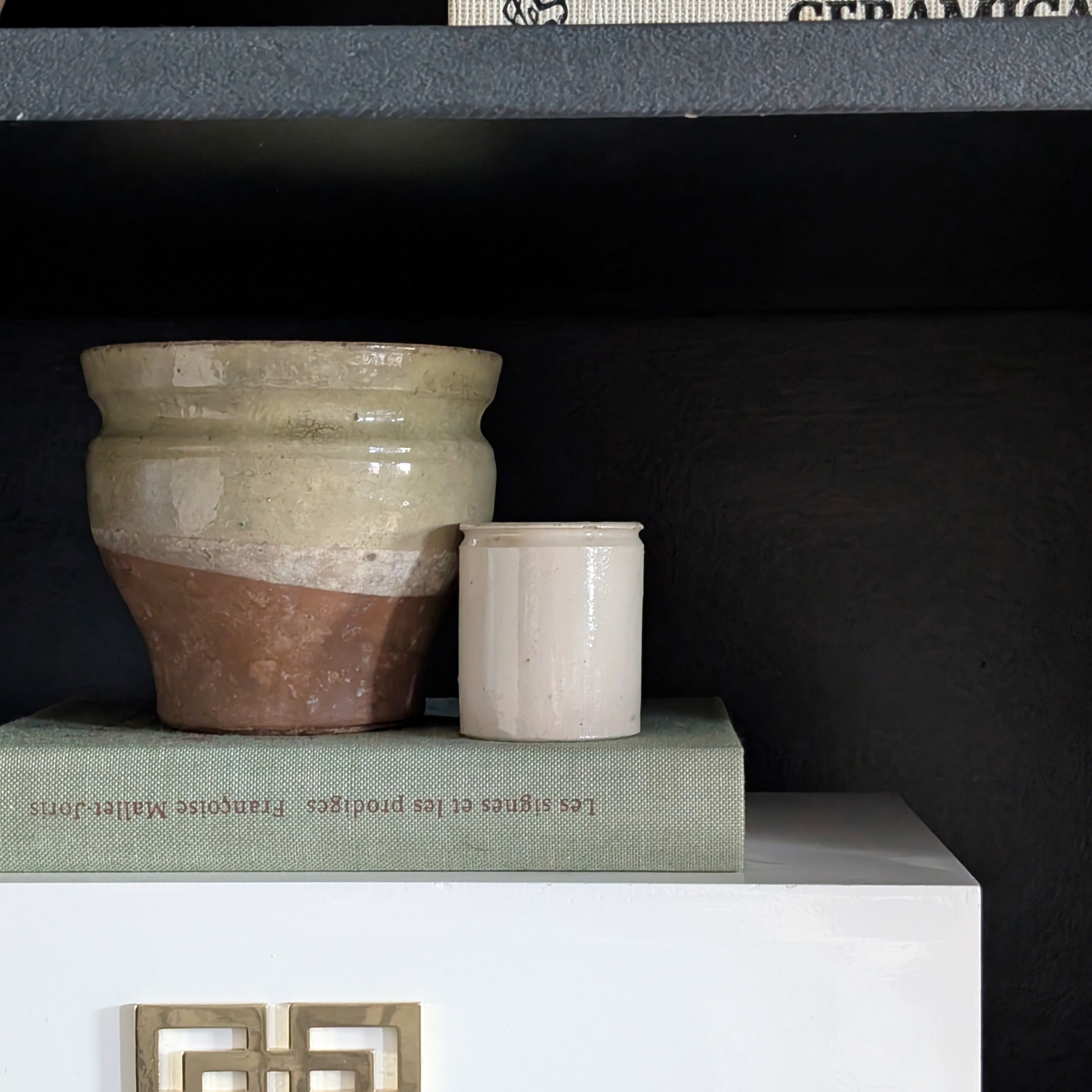 One of the stars of our French adventure, this pot might be dinky, but he's got BAGS of beauty! A teeny terracotta vessel, it's the delicious pistachio-glazed top and inside that make this pot so special to me. Perfect for styling atop a stack of books with a few floral sprigs.