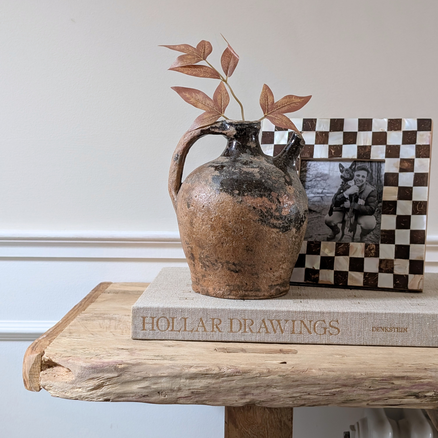 It's official, this is my favourite piece from our Bijou Collection! This primitive beauty originates from France and has a striking silhouette of spout and handle. A rich array of tones and texture, this dinky vessel is perfect styled alone, or holding a single stem.