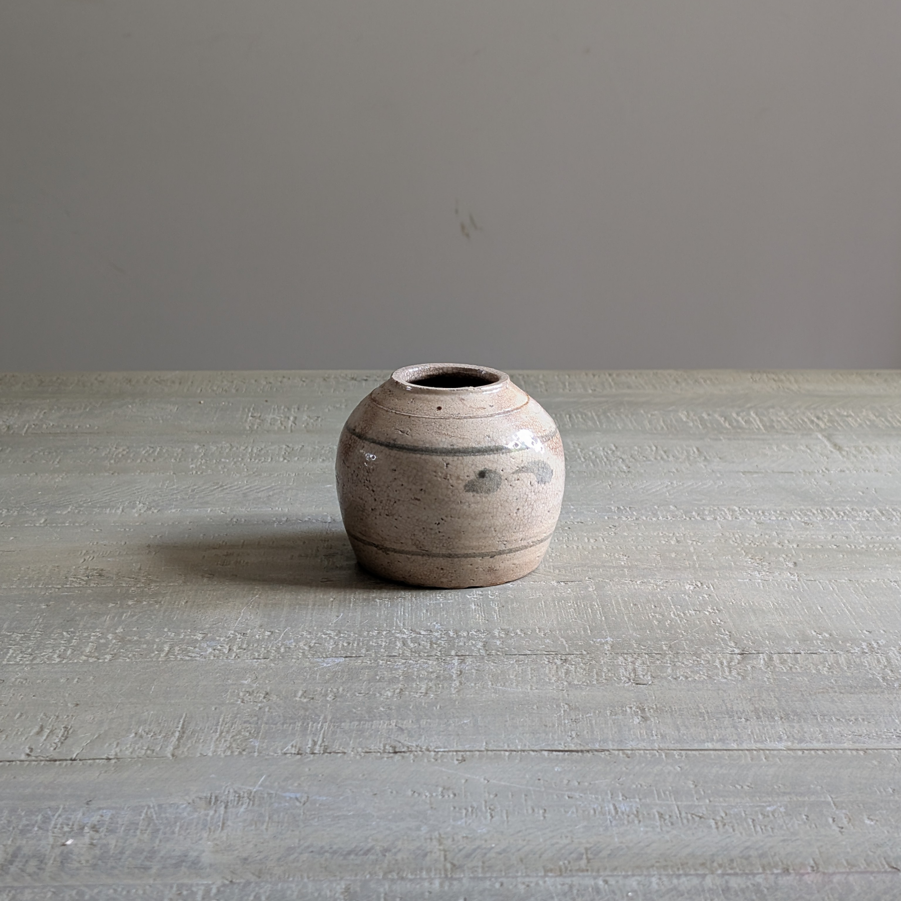 This beautiful 19th-century ginger jar has a classic whiteish-grey colouring. Featuring a simple design of darker grey bands and painted illustrations, this one-of-a-kind piece would be perfect for styling just about any shelf, cabinet, or corner.