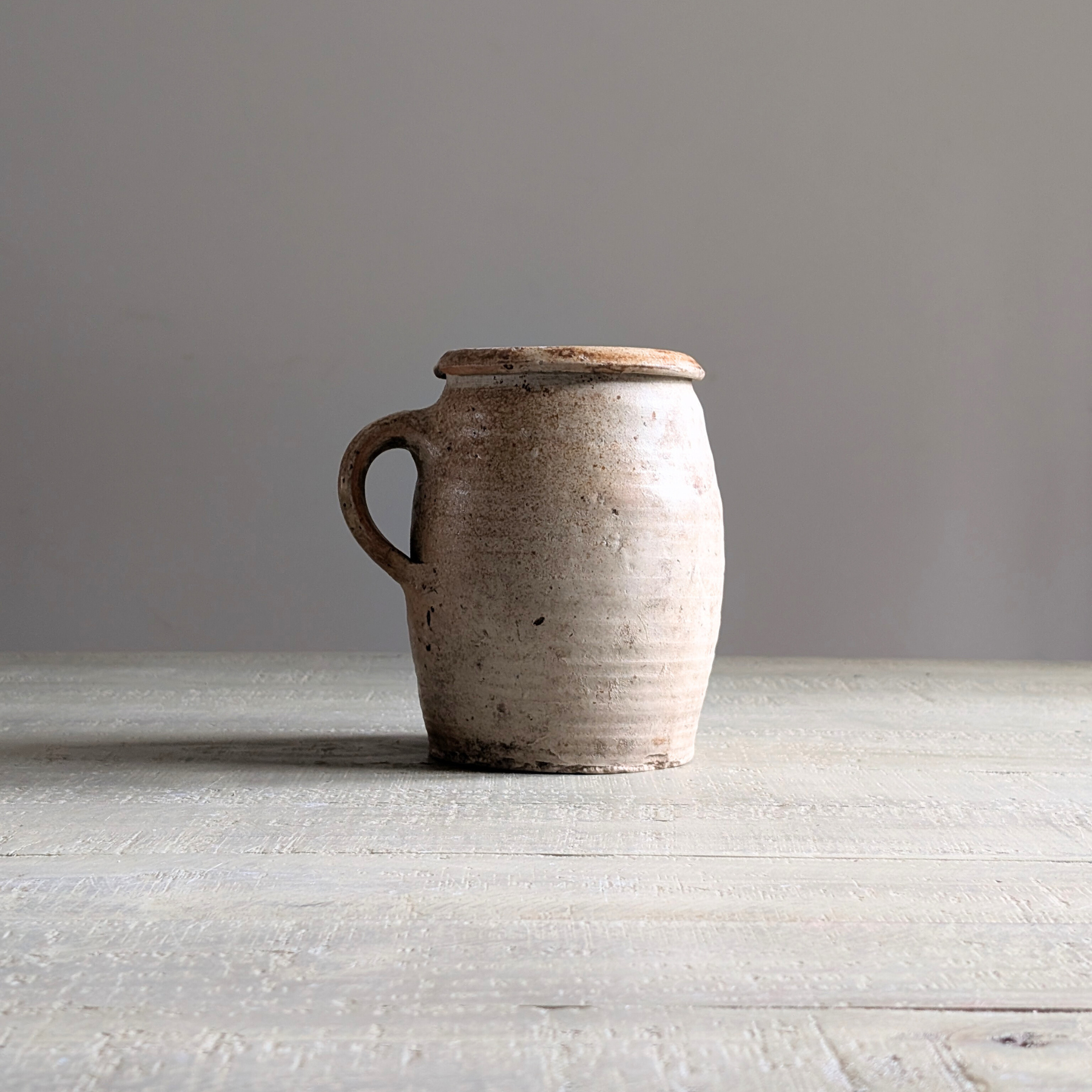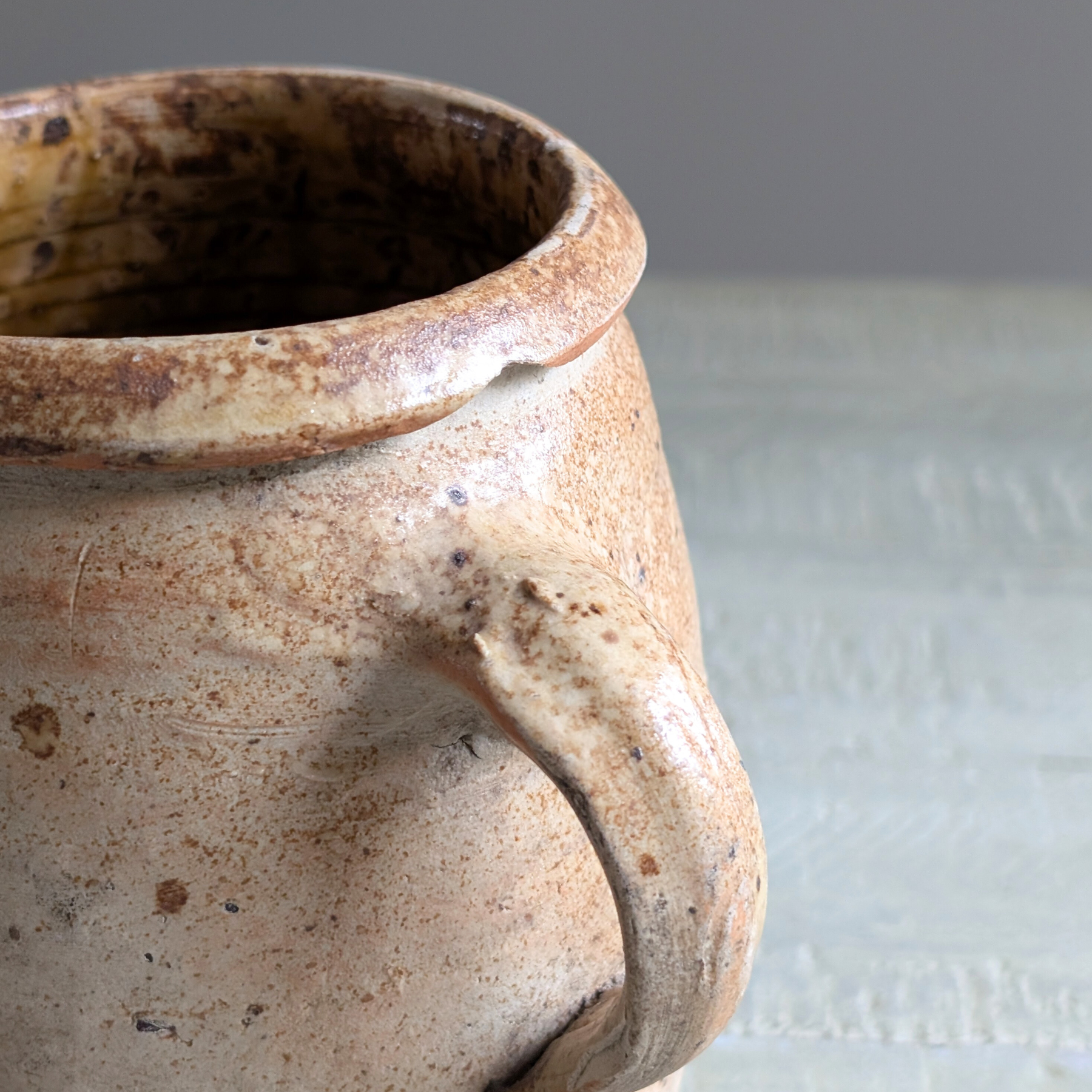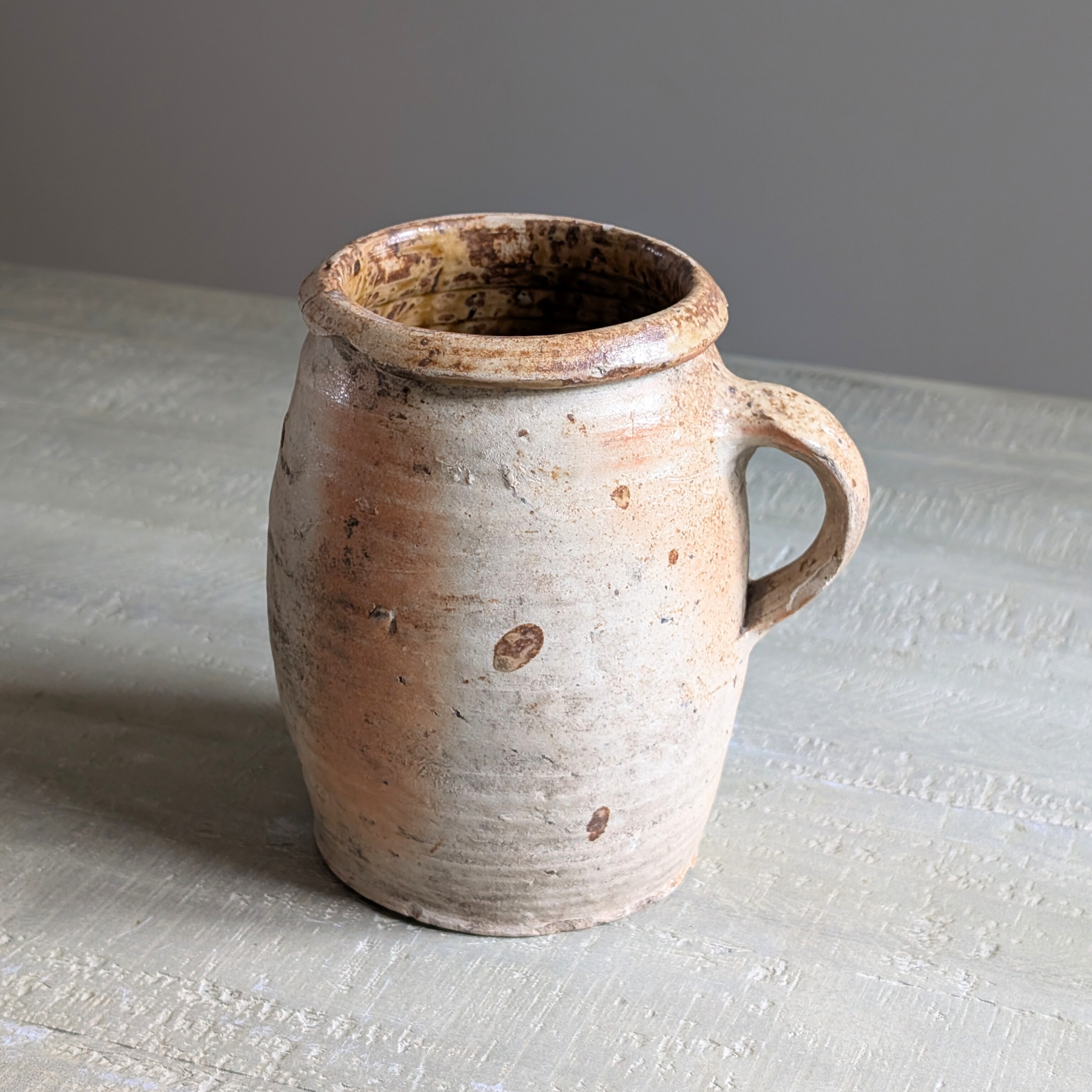 This earthenware pot originates from France and likely dates back to the 19th century. With a beautiful mix of grey and warm, earthy tones, this piece is perfect as a vase for fresh or dried flowers, or to house your wooden kitchen utensils to add farmhouse charm to your space.