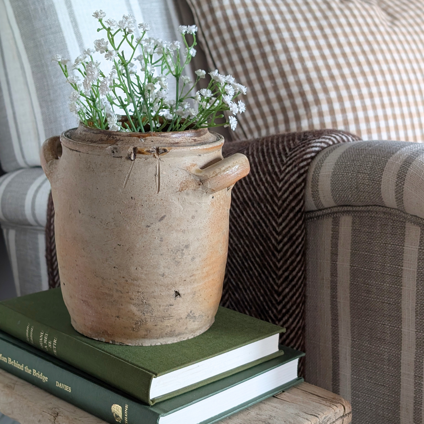 Neutral pots don't come much prettier than this one! This little French double-handled confit pot is the most beautiful warming neutral shade with a 'pumpkin' glazed inner, and the perfect vintage piece to add some French country farmhouse charm to your home. Style alone or display your favourite seasonal bouquet.