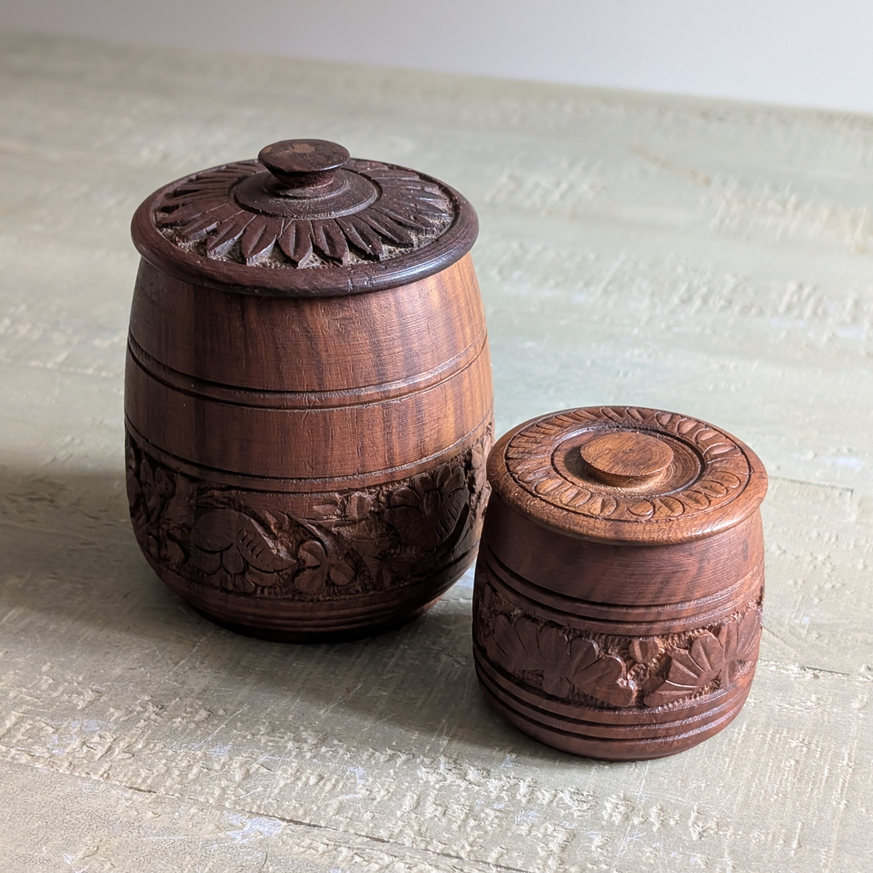 Hand Carved Wooden Trinket Pots