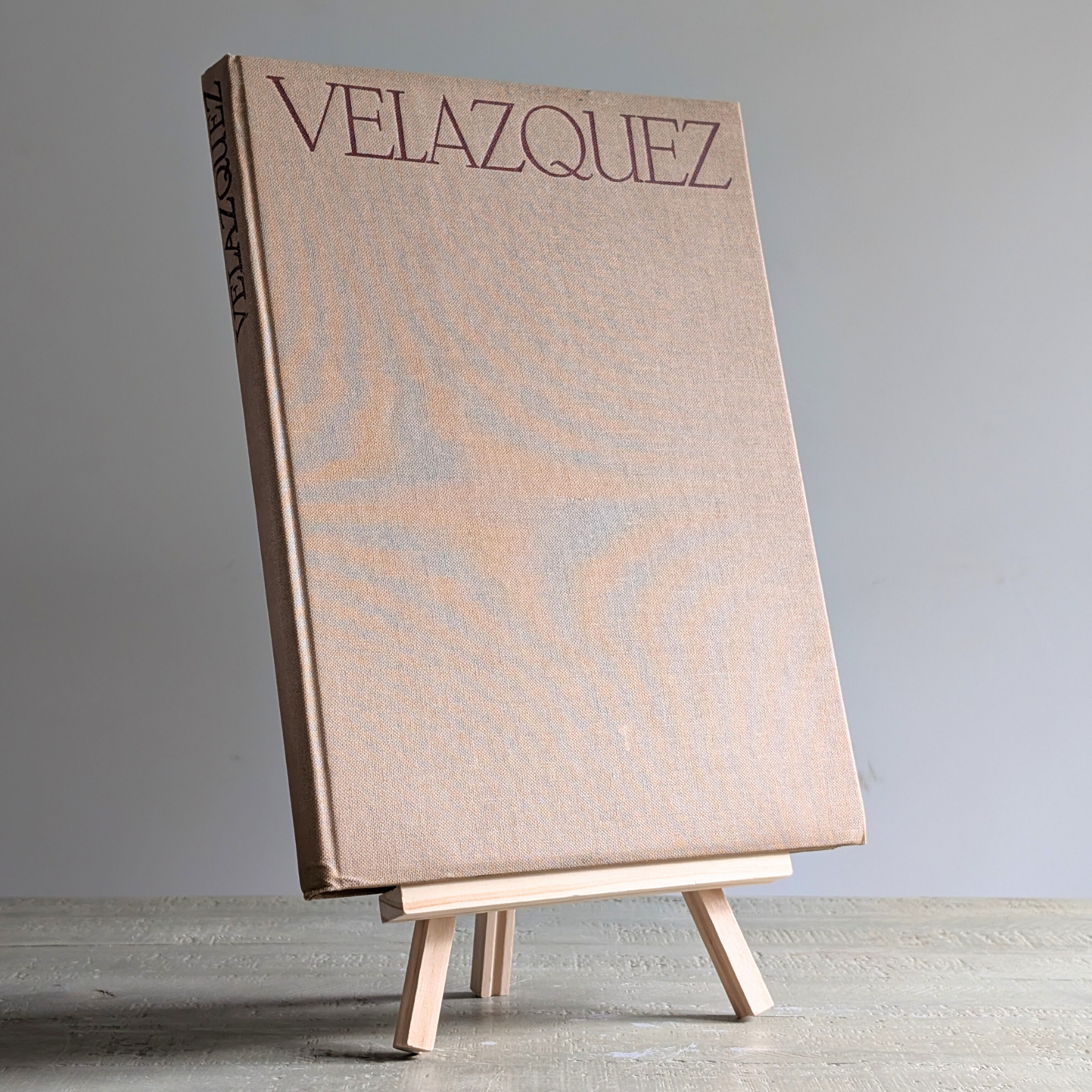 This large coffee table book features a series of plates (which you could remove and frame!) from the renowned artist Velazquez. Housed in a classic, textural beige cloth, with a deep burgundy motif on the front, this book would make a great gift for an art lover in your life! This book does show some sign of aging and wear to the spine as depicted in images.