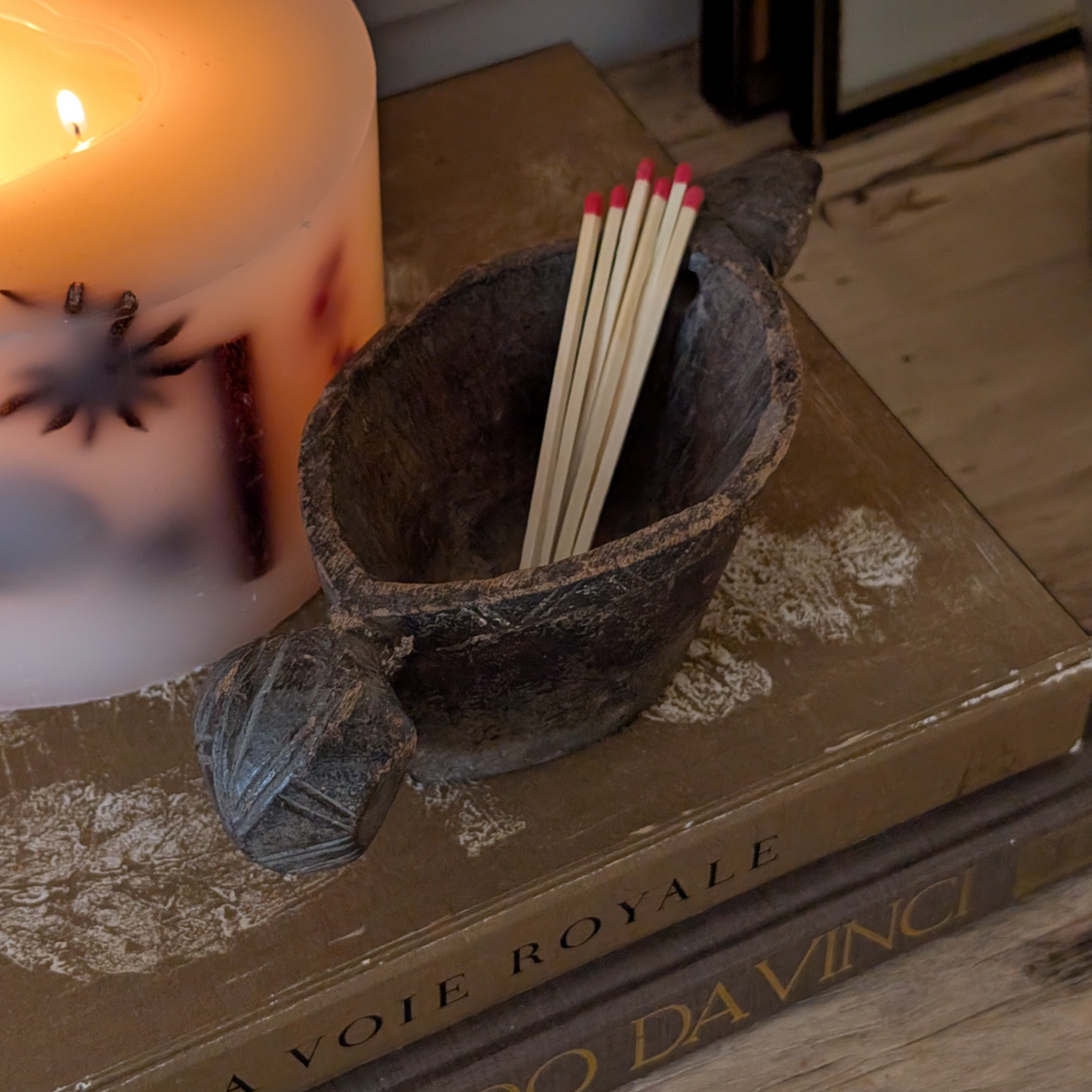 This darling little jug is hand-carved from wood and was originally used to scoop, measure, and pour. Sourced on my last trip to Paris, today it's a gorgeous little display piece that could be used to hold jewellery, keys, matches, trinkets, or just to sit pretty atop a stack of books!