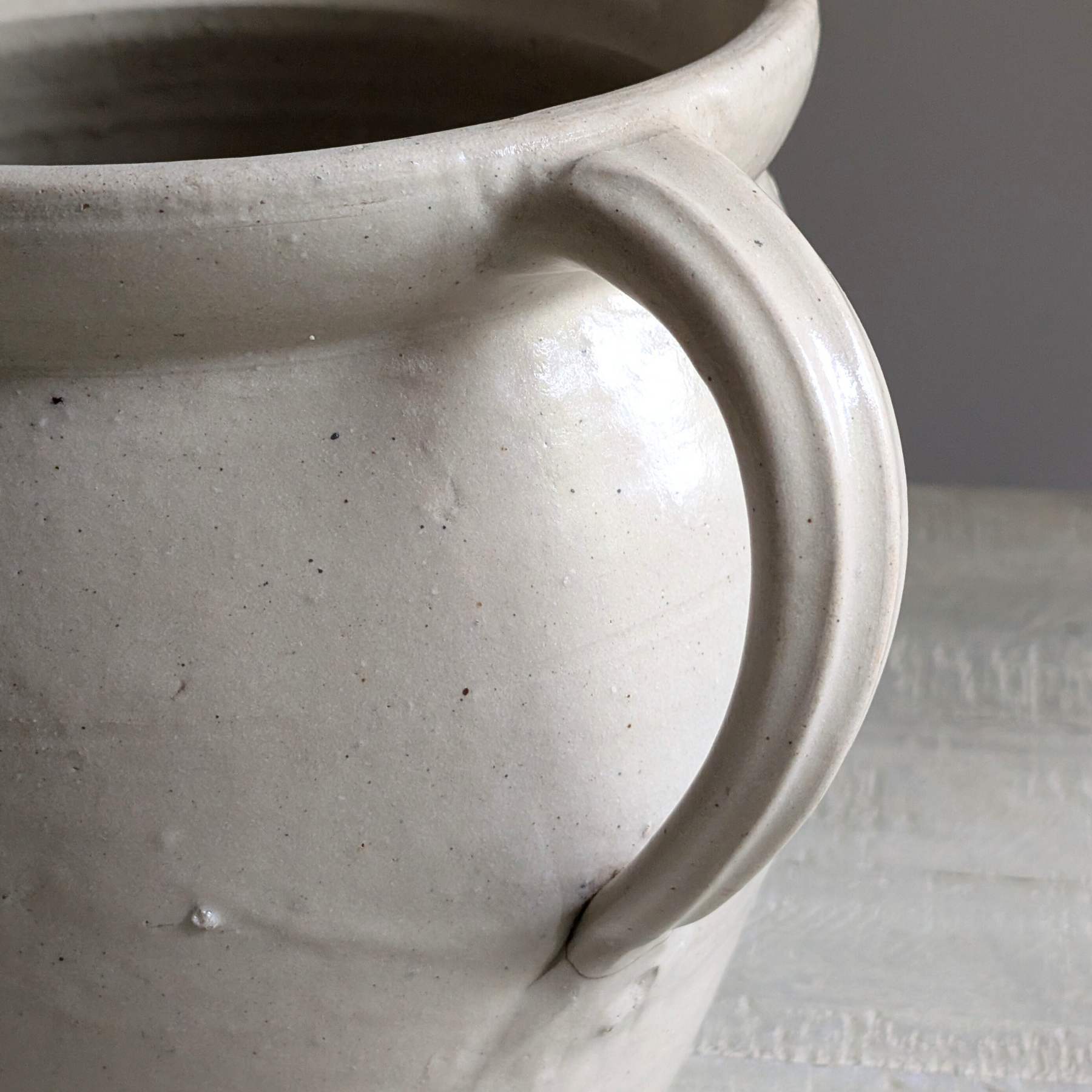 This stunning XL French pot is the perfect piece to house a large floral bouquet, as a dining table centrepiece or on a console or coffee table. Featuring a lovely glossy cream glaze with subtle speckled detail, this pot is one of my favourite Parisian finds!