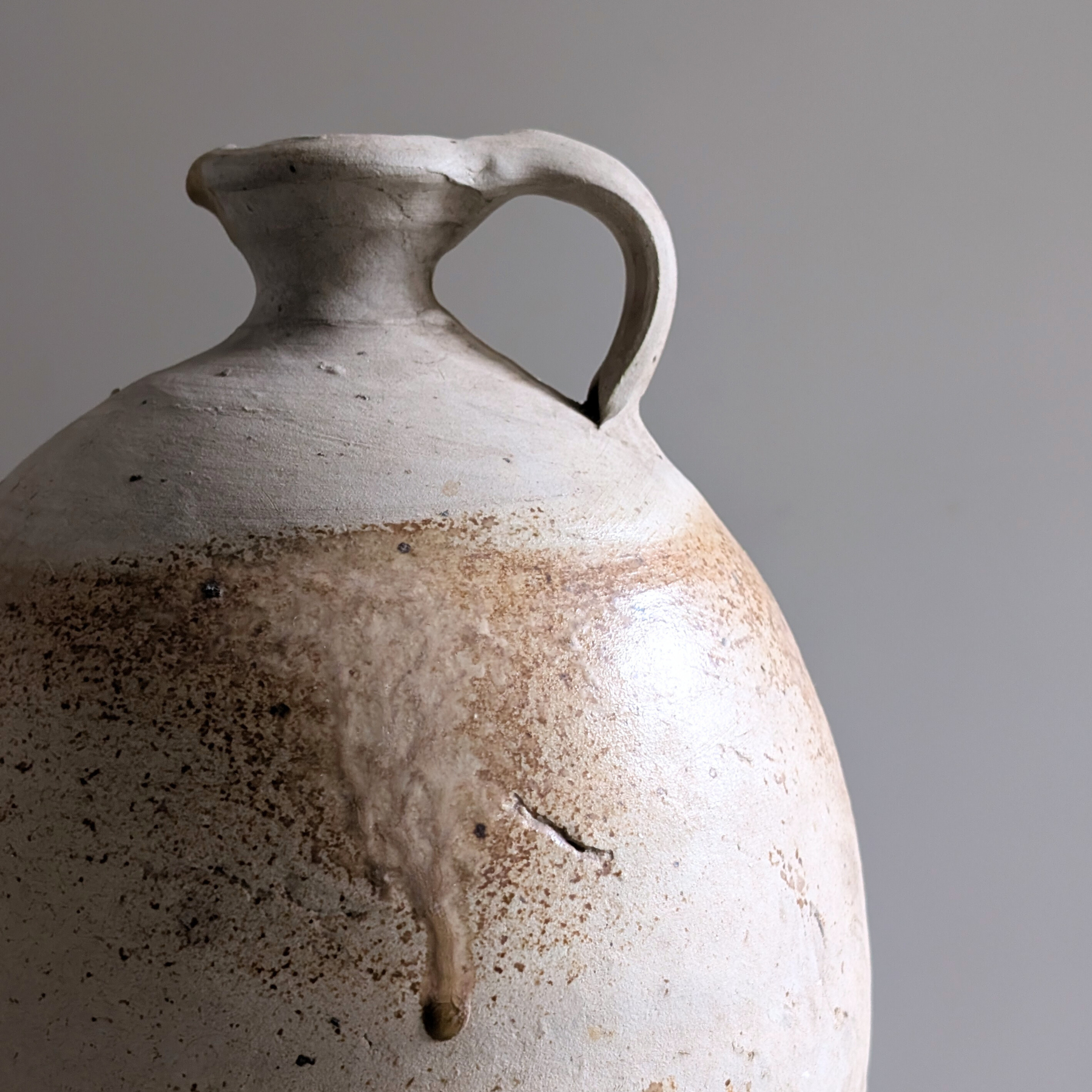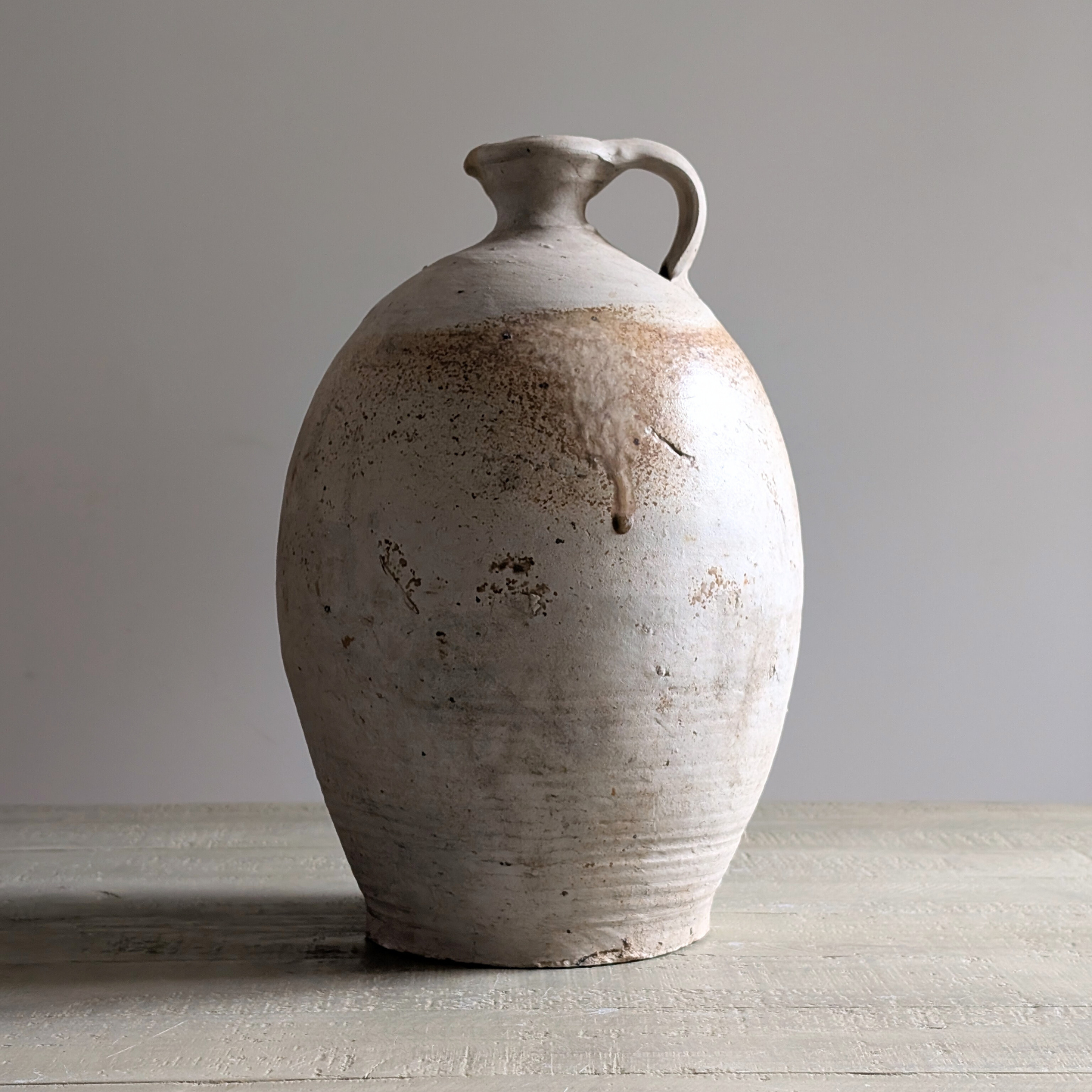 This extra-large antique jug was sourced in France. With muted grey and earthy neutral tones, and a classic shape, this piece is ideal for kitchen styling. Pair with one of our smaller antique jugs for a layered look.