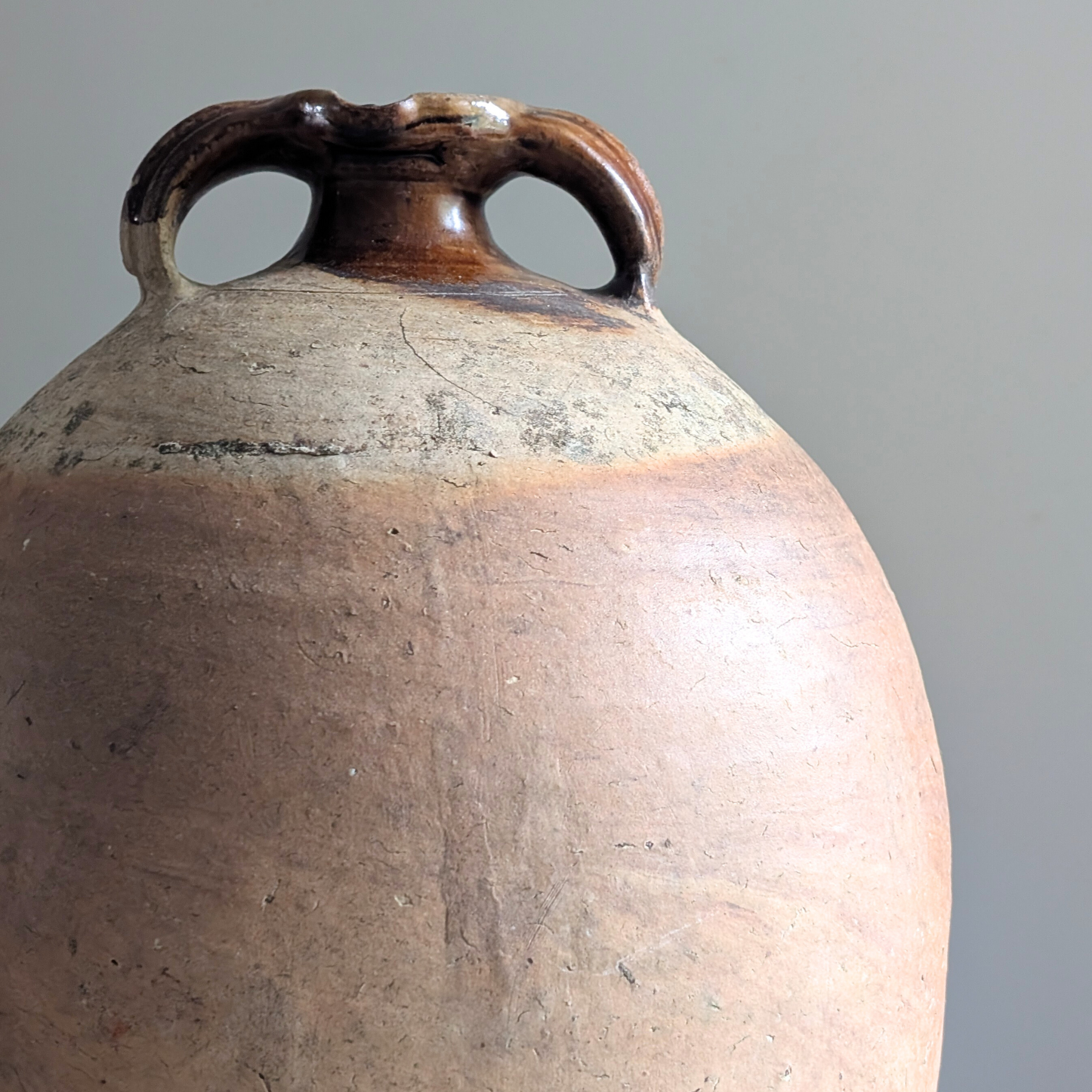 What a pot!! This XL French oil jug might just be the one that got away because I was so close to keeping it for my personal collection. A stunning warm earthy body, deep caramel glazed neck, and big proportions work together to make this pot a true Autumnal statement piece. Style alone or with a single branch or stem to add to its beauty. This pot really is the moment.