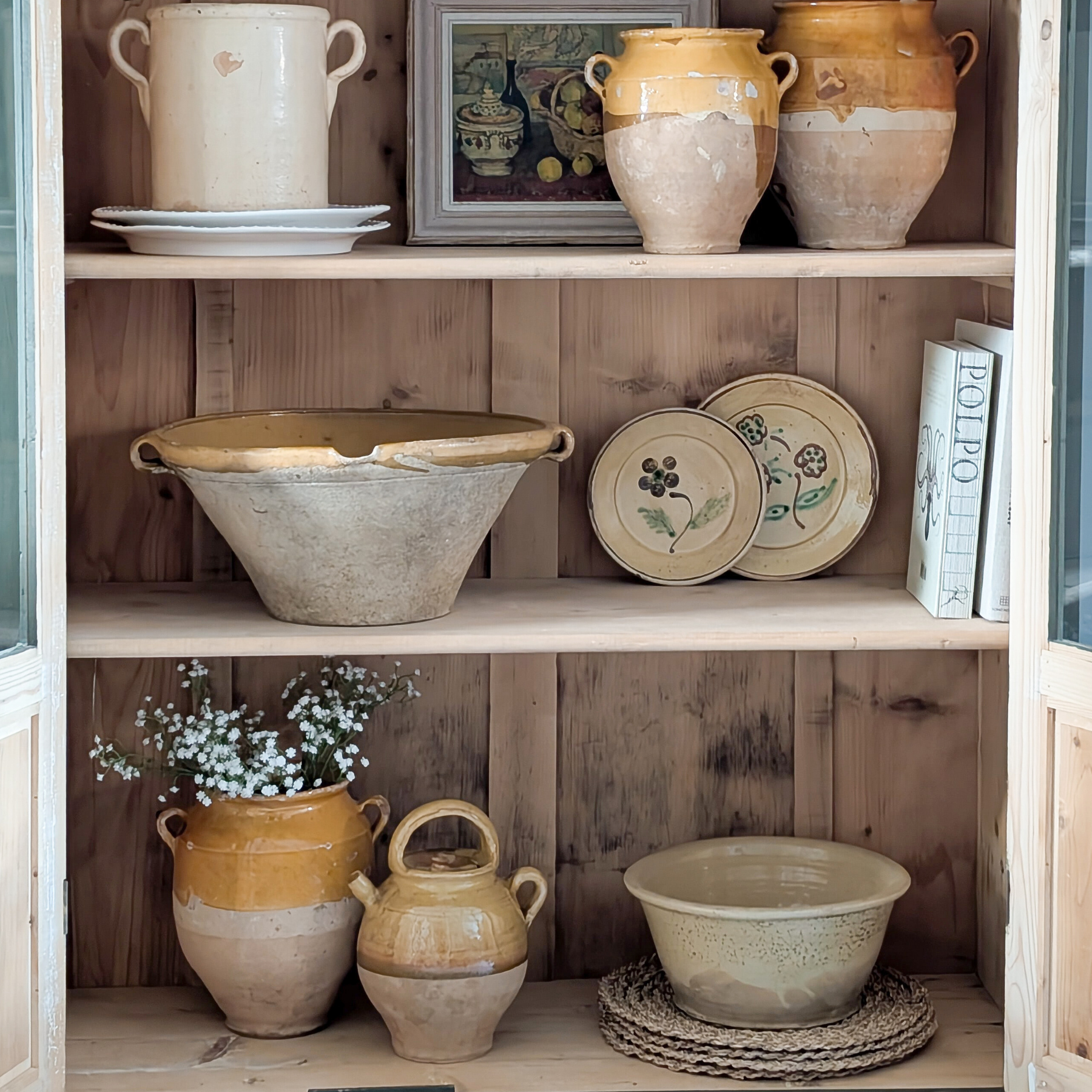 This beautiful trio of decorative plates were sourced in France and feature beautiful illustrative flowers in green and brown glazes. Ideal pieces to display on a wall or on kitchen shelving for an instant pop of colour!